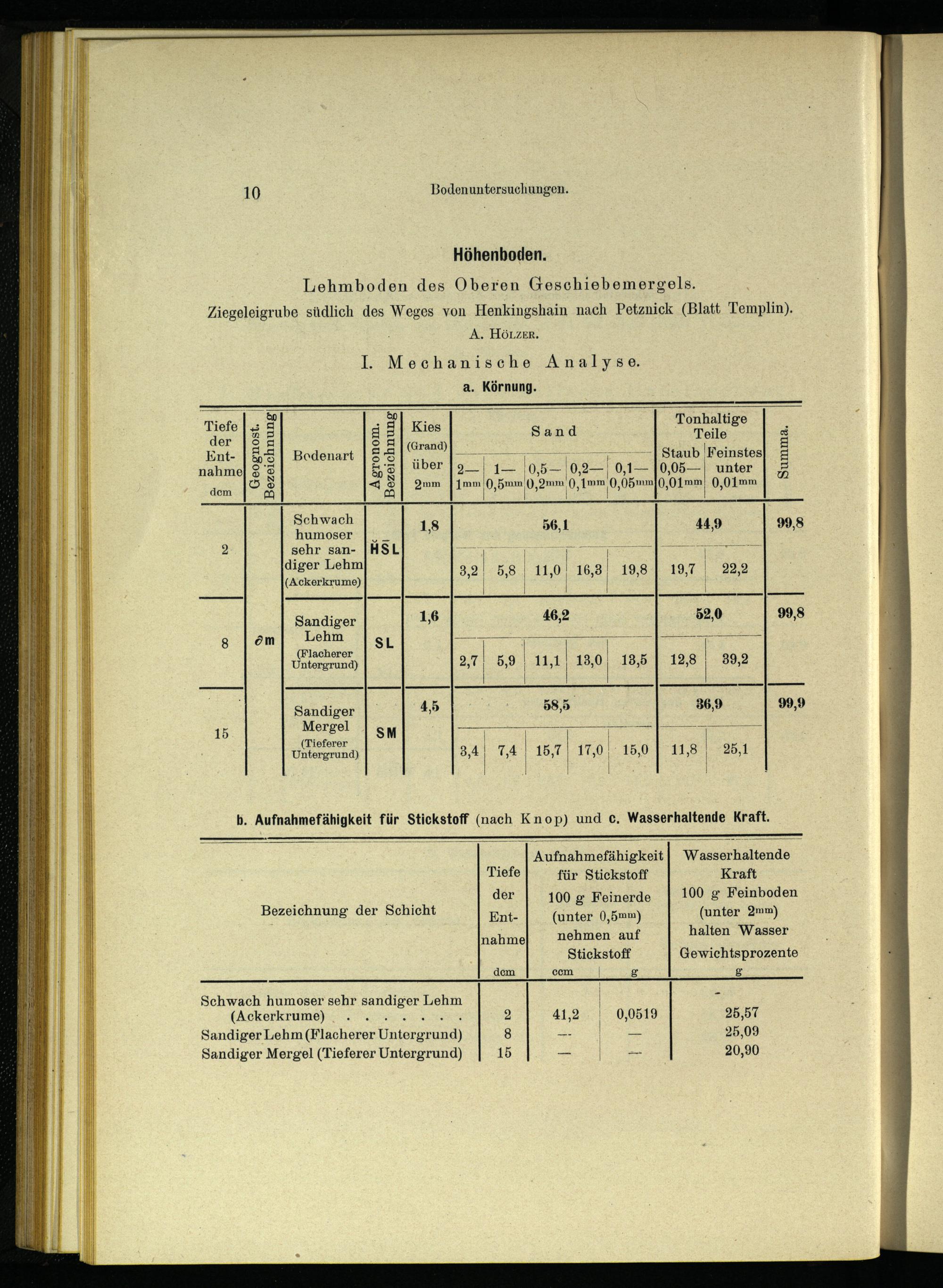 IV. Chemische und mechanische Bodenuntersuchungen.