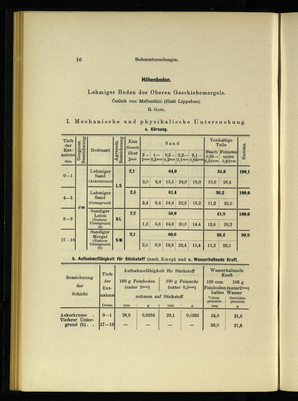 IV. Chemische und mechanische Bodenuntersuchungen.