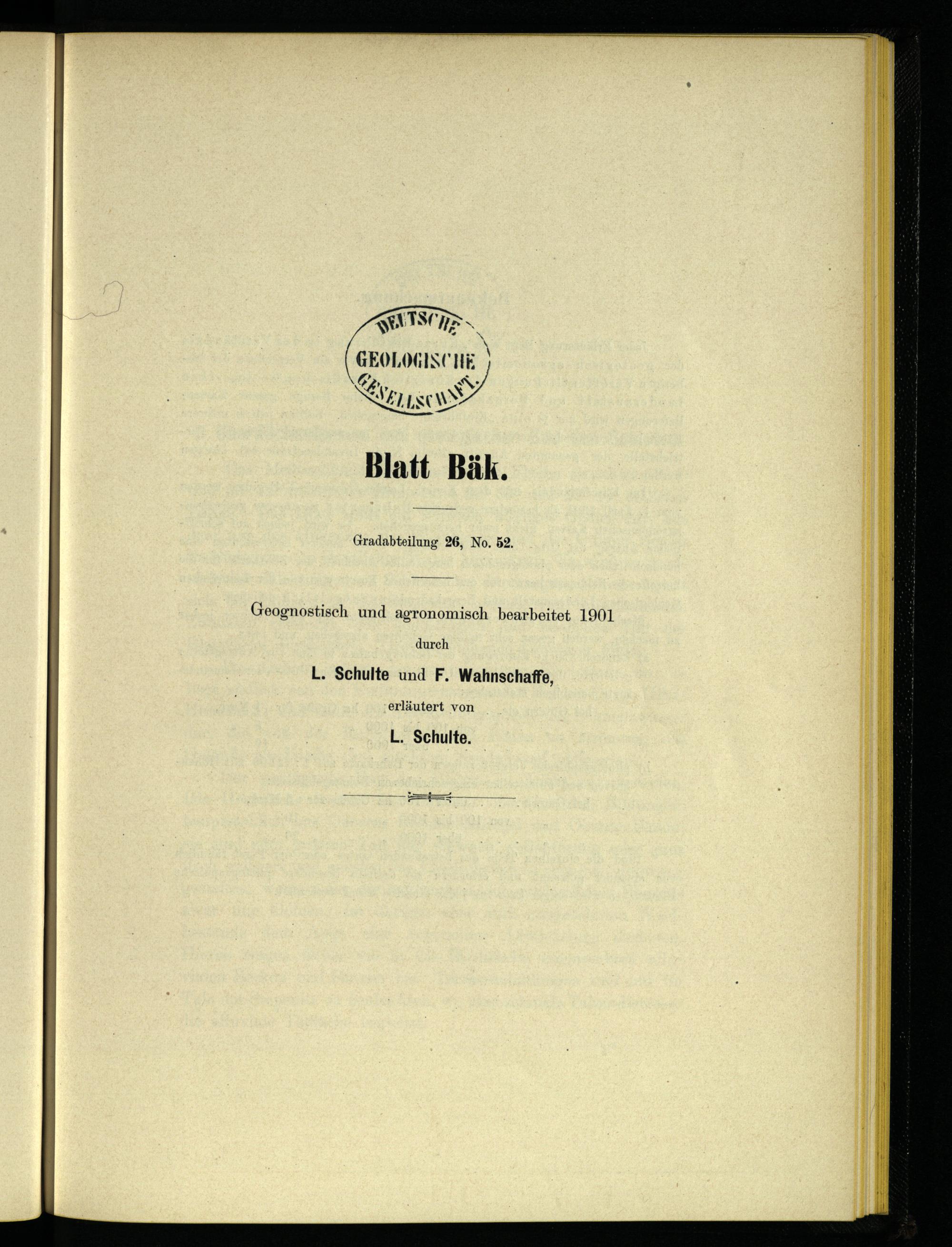 Grad-Abtheilung 26, Blatt 52 [Neue Nr. 2837] (1905) Bäk / geognostisch und agronomisch bearb. durch L. Schulte und F. Wahnschaffe 1900/1901