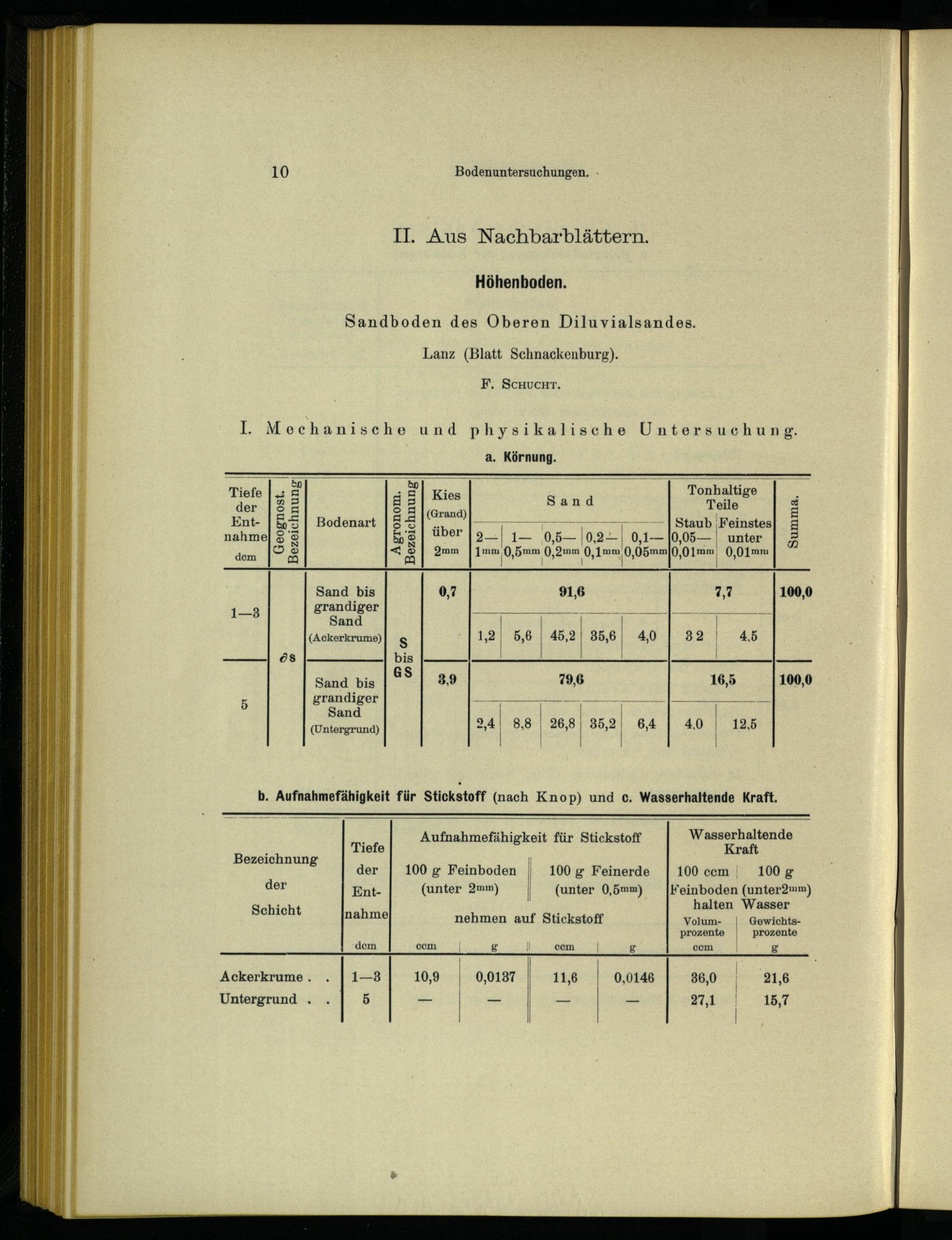 IV. Chemische und mechanische Bodenuntersuchungen.