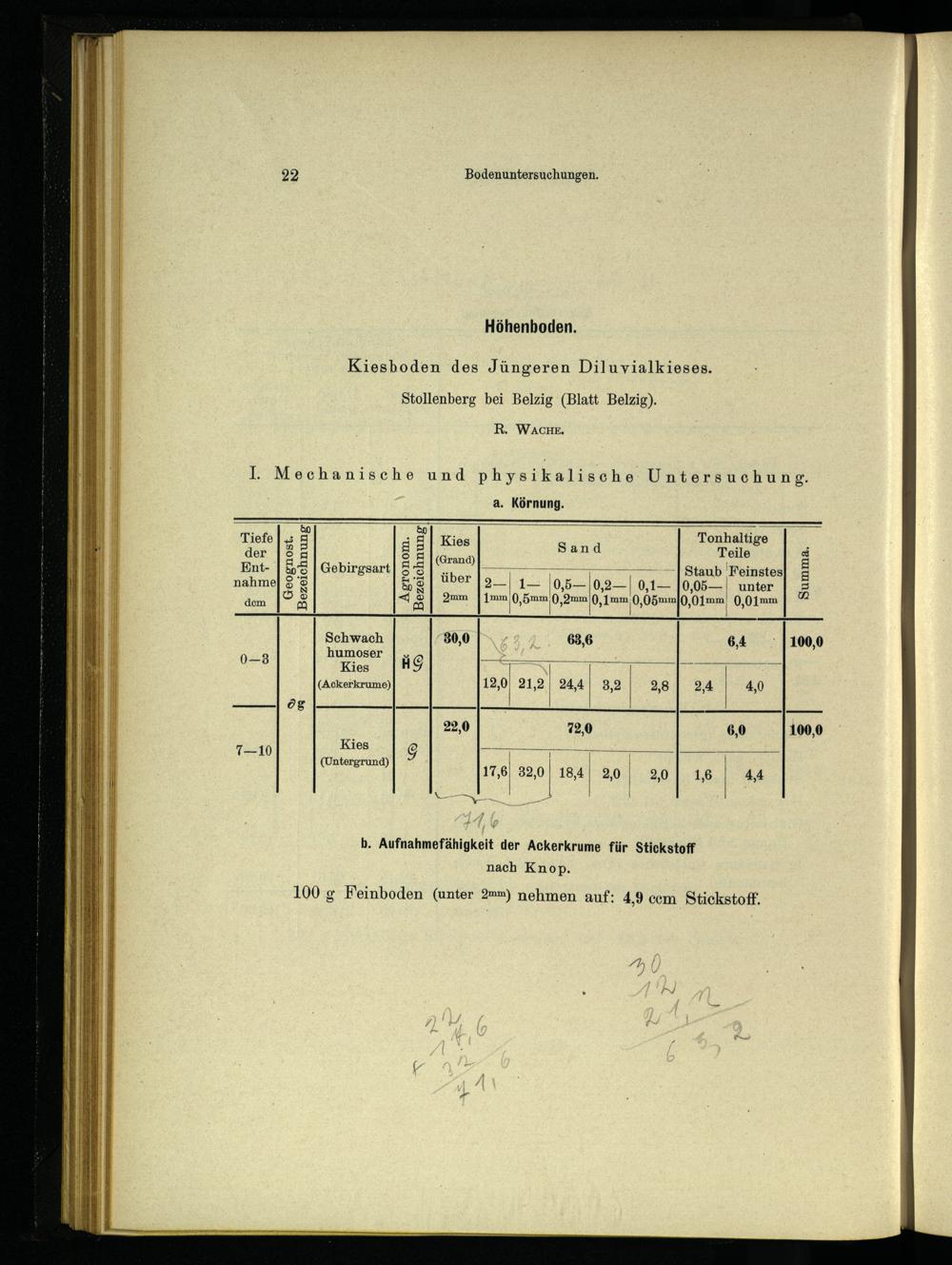 IV. Chemische und mechanische Bodenuntersuchungen.