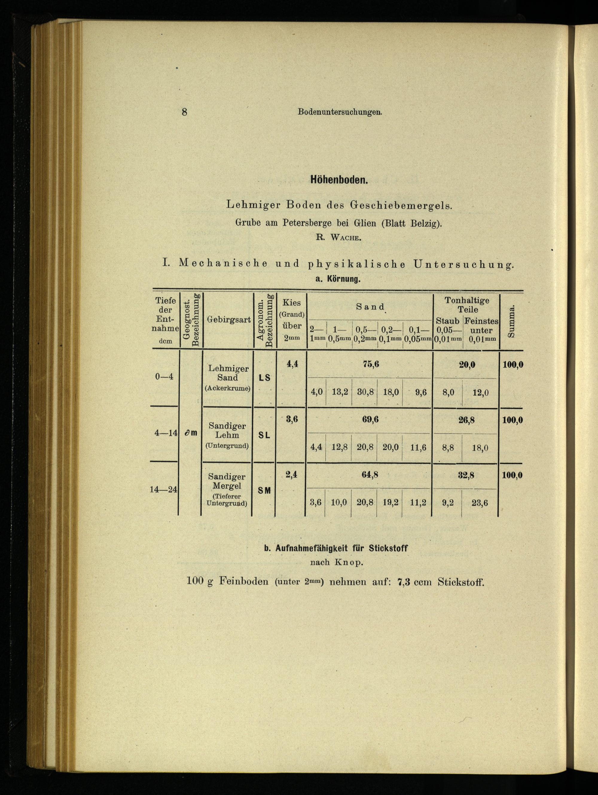 IV. Chemische und mechanische Bodenuntersuchungen.