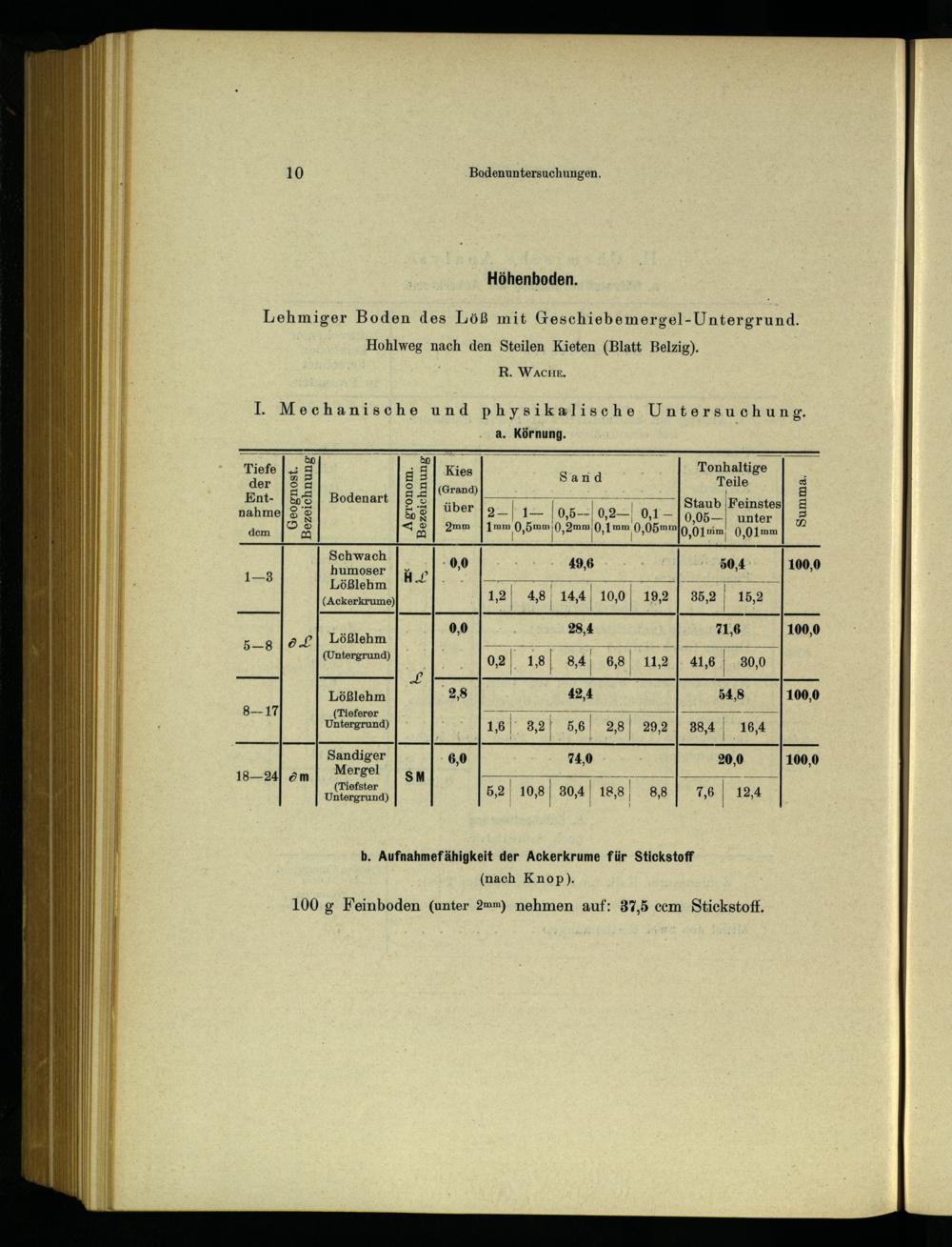 IV. Chemische und mechanische Bodenuntersuchungen.