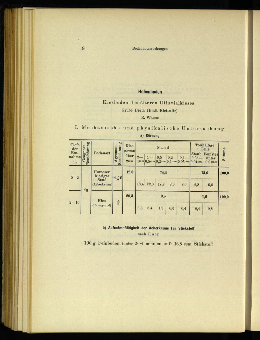 IV. Chemische und mechanische Bodenuntersuchungen