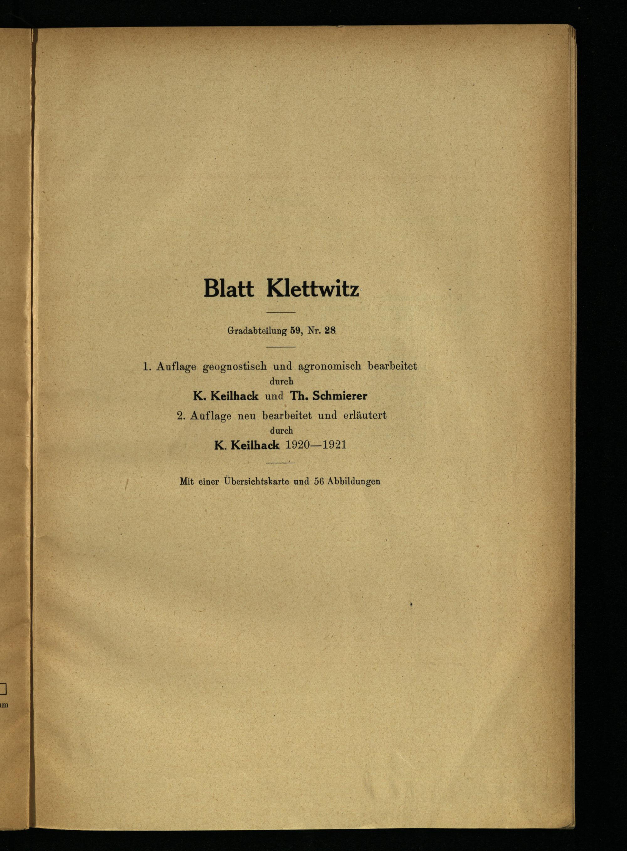 Grad-Abtheilung 59, Blatt 28 [Neue Nr. 4449] (1923) Klettwitz : geologische Karte / geologisch und agronomisch bearb. durch K. Keilhack ..