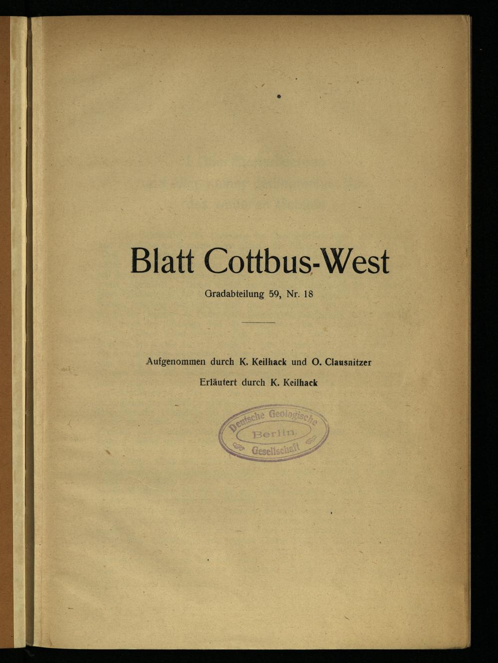 Grad-Abtheilung 59, Blatt 18 [Neue Nr. 4251] (1919) Cottbus (West) / bearb. durch K. Keilhack ..