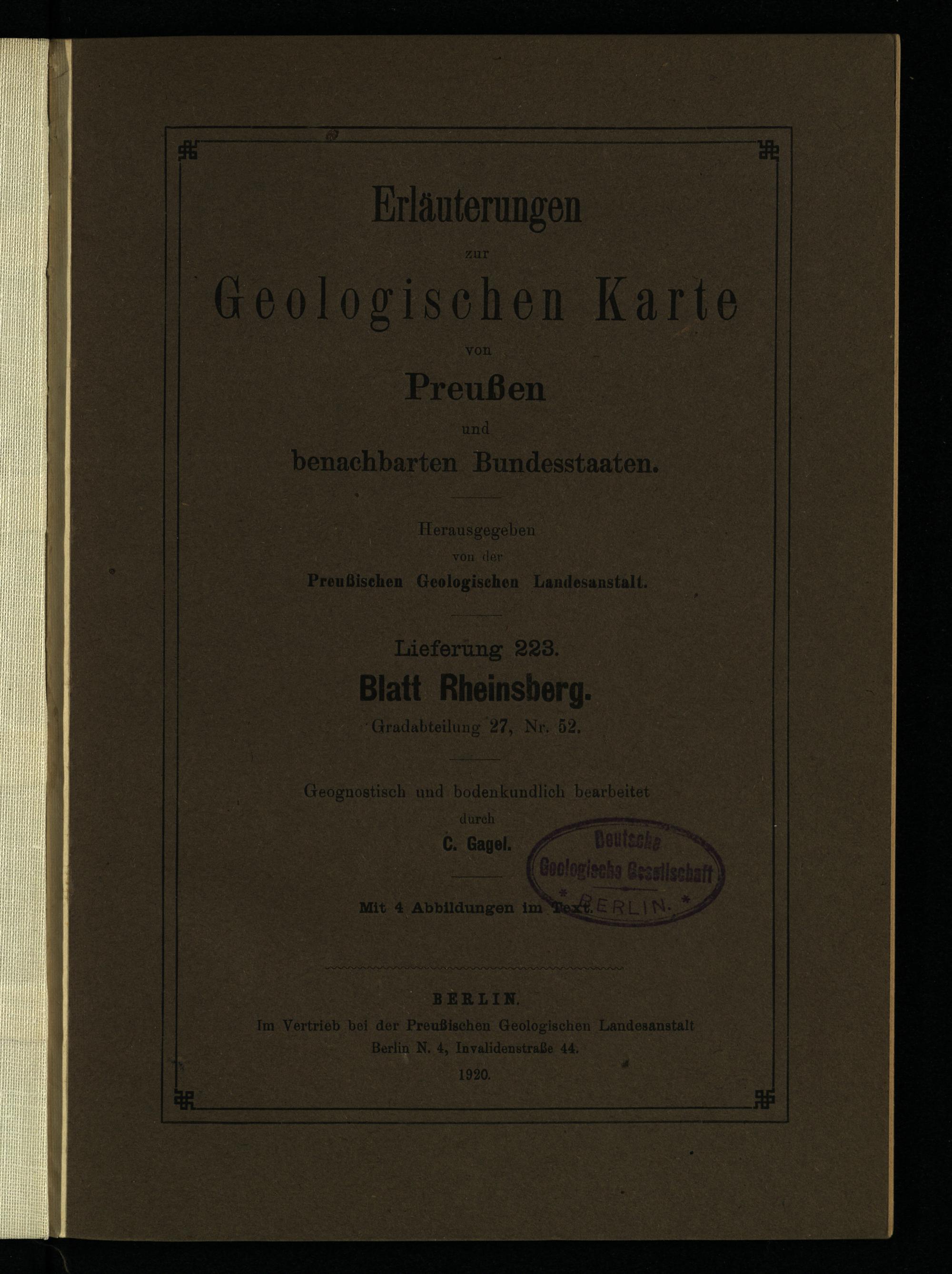 Grad-Abtheilung 27, Blatt 52 [Neue Nr. 2843] (1917) Rheinsberg / bearb. durch C. Gagel