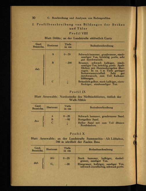G. Beschreibung und Analysen von Bodenprofilen