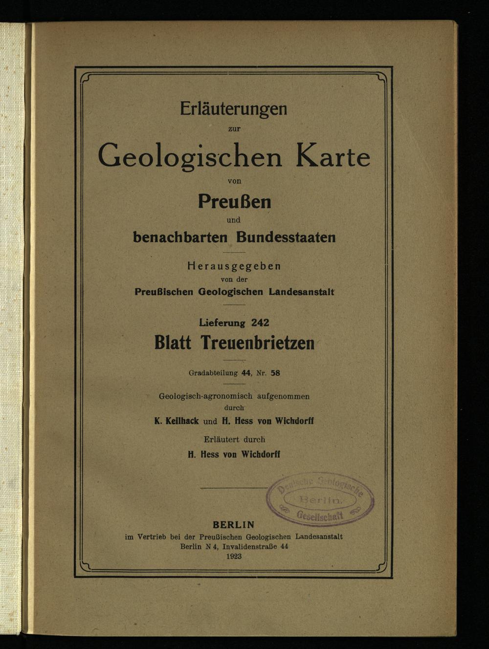 Grad-Abtheilung 44, Blatt 58 [Neue Nr. 3943] (1922) Treuenbrietzen / bearb. durch K. Keilhack