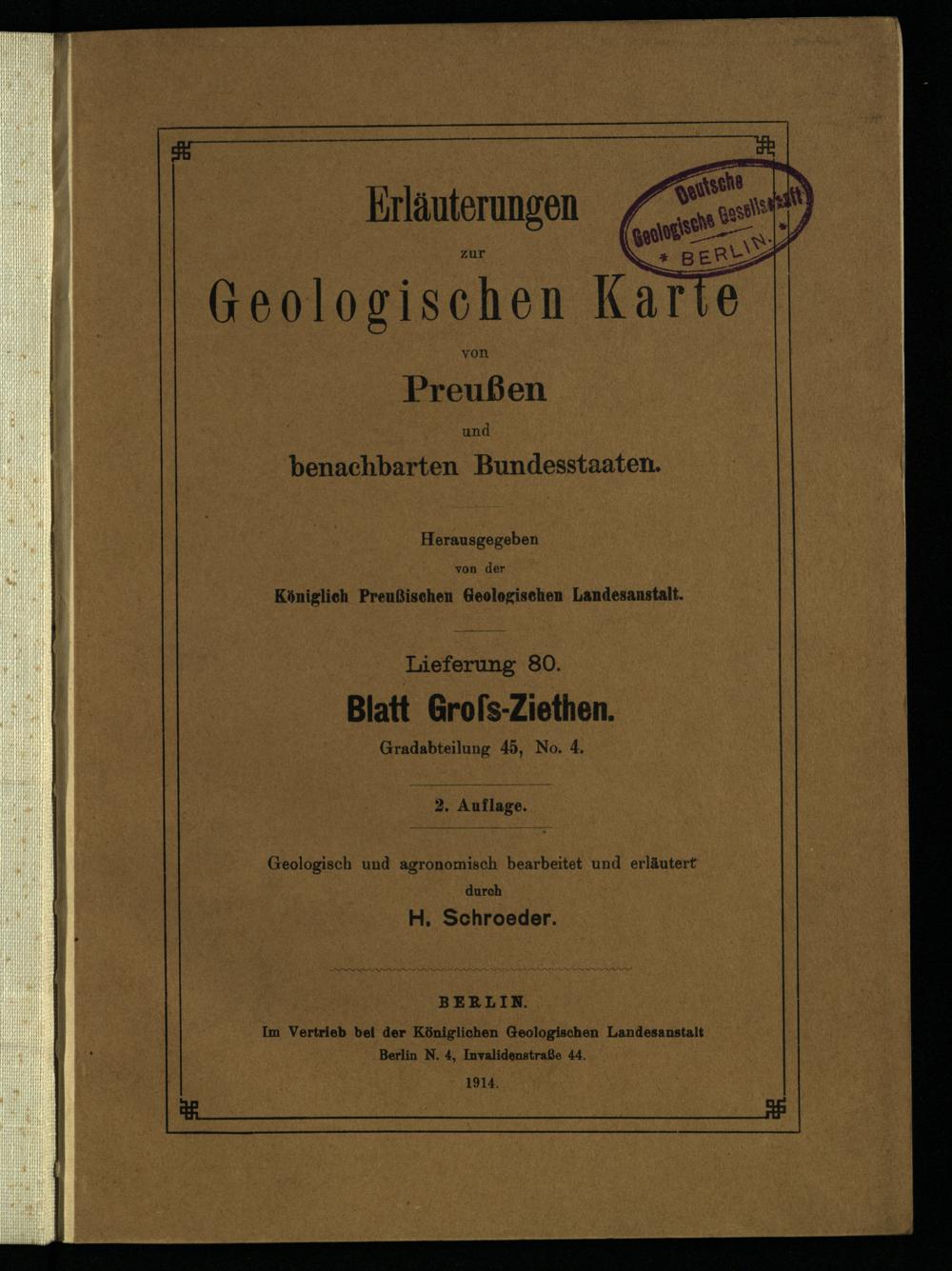 Grad-Abtheilung 45, Blatt 4 [Neue Nr. 3049] (1914) Gr. Ziethen : geologische Karte / geologisch u. agronomisch bearb. durch H. Schröder