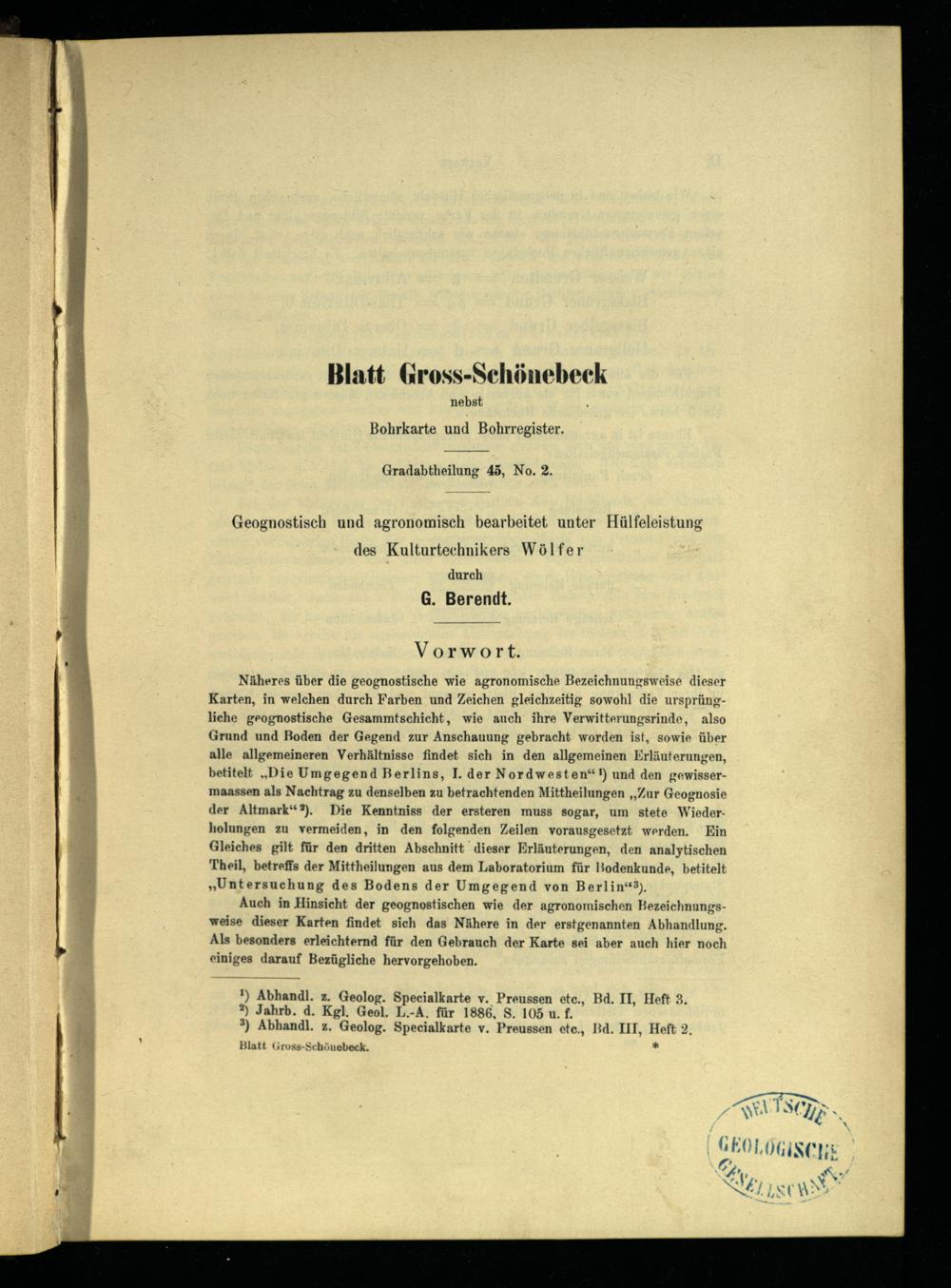 Grad-Abtheilung 45, Blatt 2 [Neue Nr. 3047] (1891) Gr. Schönebeck : geologische Karte / geognost. u. agronom. bearb. durch G. Berendt 1886 ...