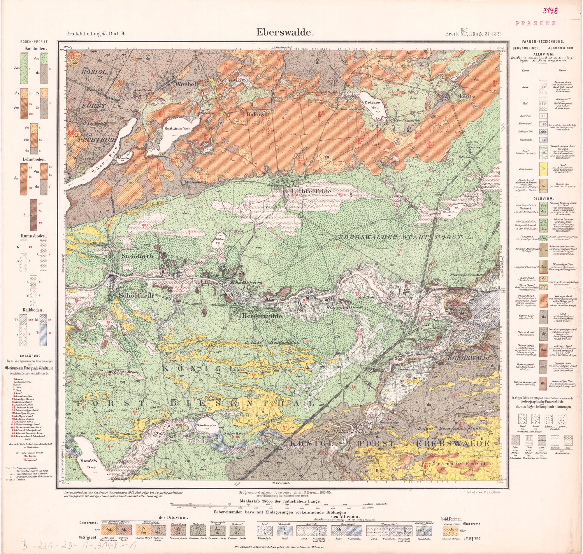 Grad-Abtheilung 45, Blatt 9 [Neue Nr. 3148] (1891) Eberswalde : geologische Karte / geognostisch und agronomisch bearb. durch G. Berendt 1883-85