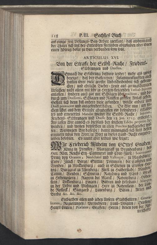 Friedrich Wilhelms, Königes in Preussen, Verbessertes Land-Recht, Des Königreichs Preussen : Worinnen Die kleinere Buchstaben des Textes dasjenige, so aus dem vorigen Land-Recht beybehalten, die grössere Buchstaben, was in der Revision geändert oder hinzugethan, die * aber, daß etwas ausgelassen worden, anzeigen