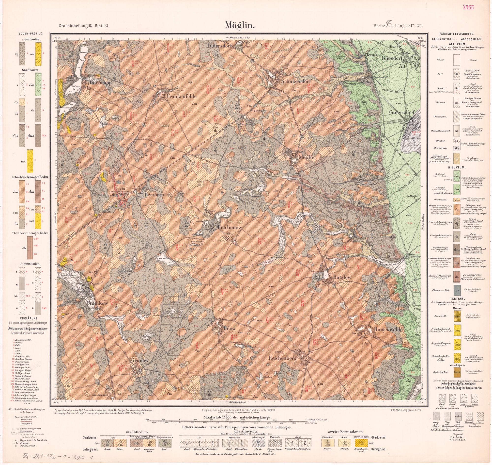 Grad-Abtheilung 45, Blatt 23 [Neue Nr. 3350] (1895) Möglin : [geologische Karte] / geognostisch und agronomisch bearb. durch F. Wahnschaffe ; unter Hülfeleistung des Landmessers Reimann