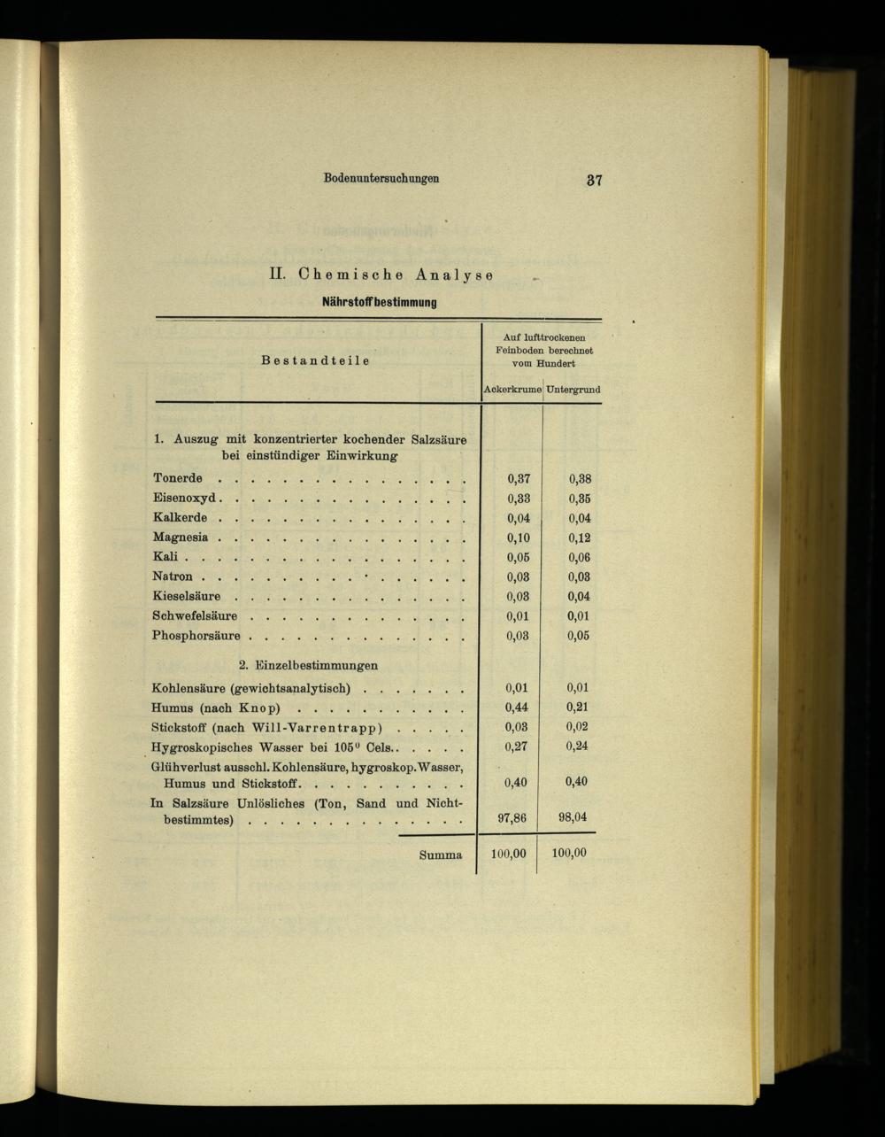IV. Mechanische und chemische Bodenuntersuchungen