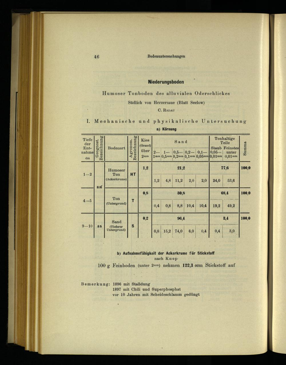 IV. Mechanische und chemische Bodenuntersuchungen