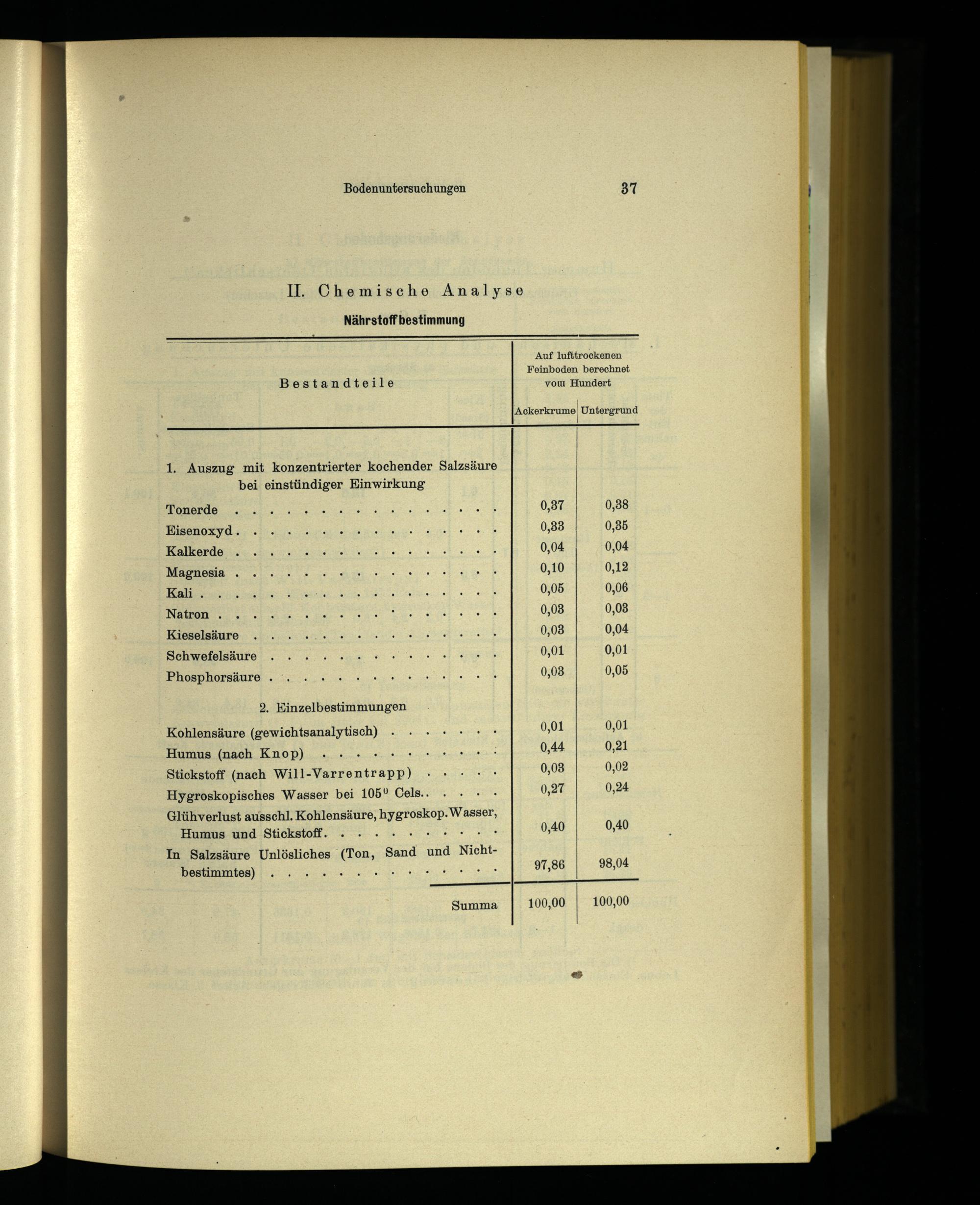 IV. Mechanische und chemische Bodenuntersuchungen