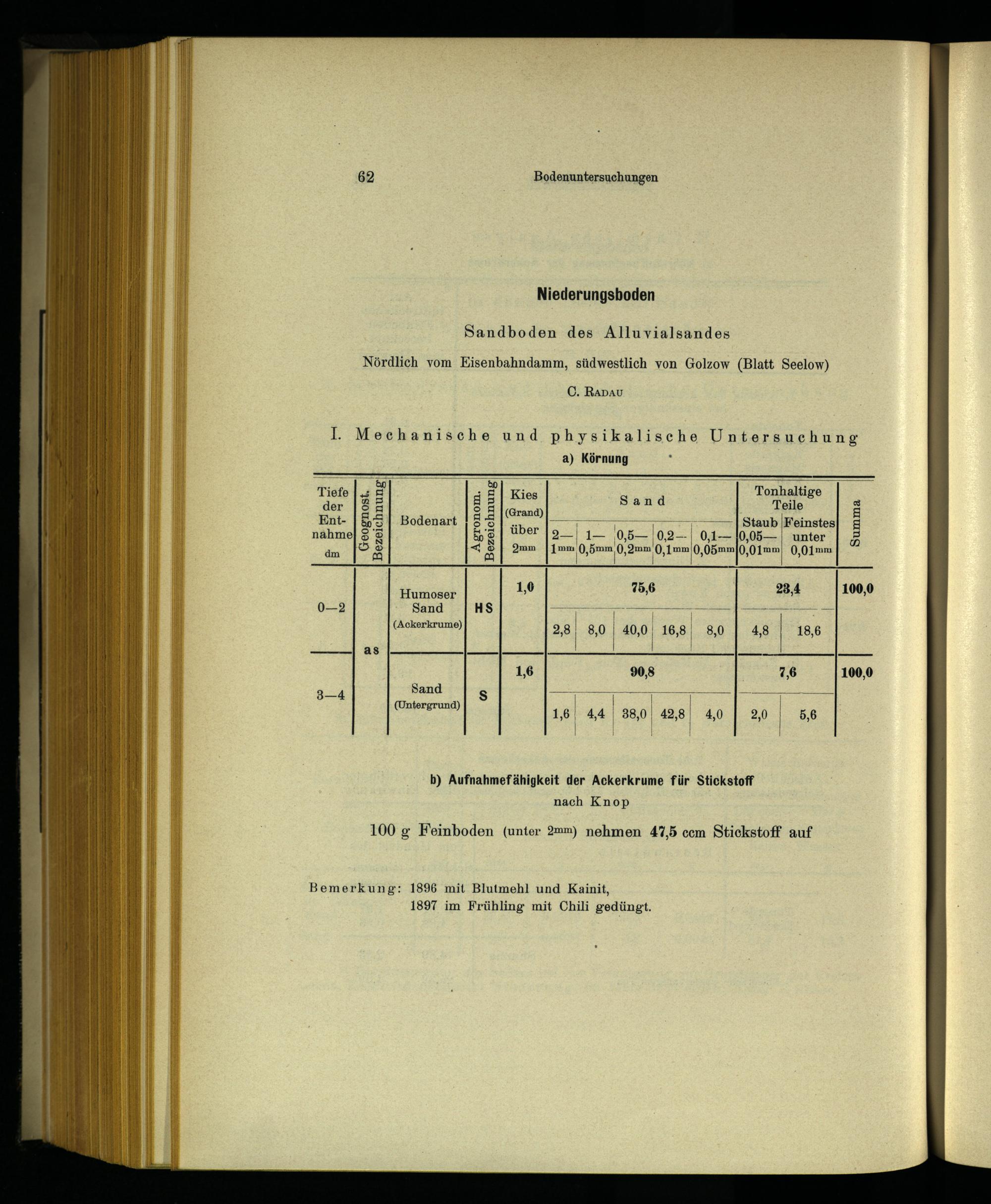 IV. Mechanische und chemische Bodenuntersuchungen