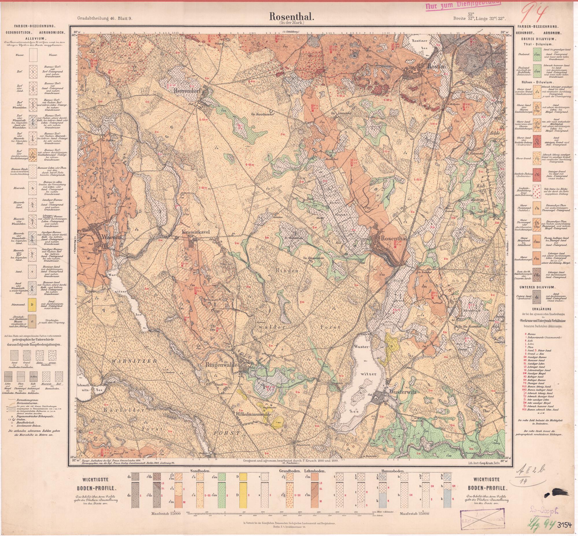 Grad-Abtheilung 46, Blatt 9 [Neue Nr. 3154] (1902) Rosenthal (in der Mark) : geologische Karte / geognostisch und agronomisch bearb. durch P. Krusch 1898 und 1899