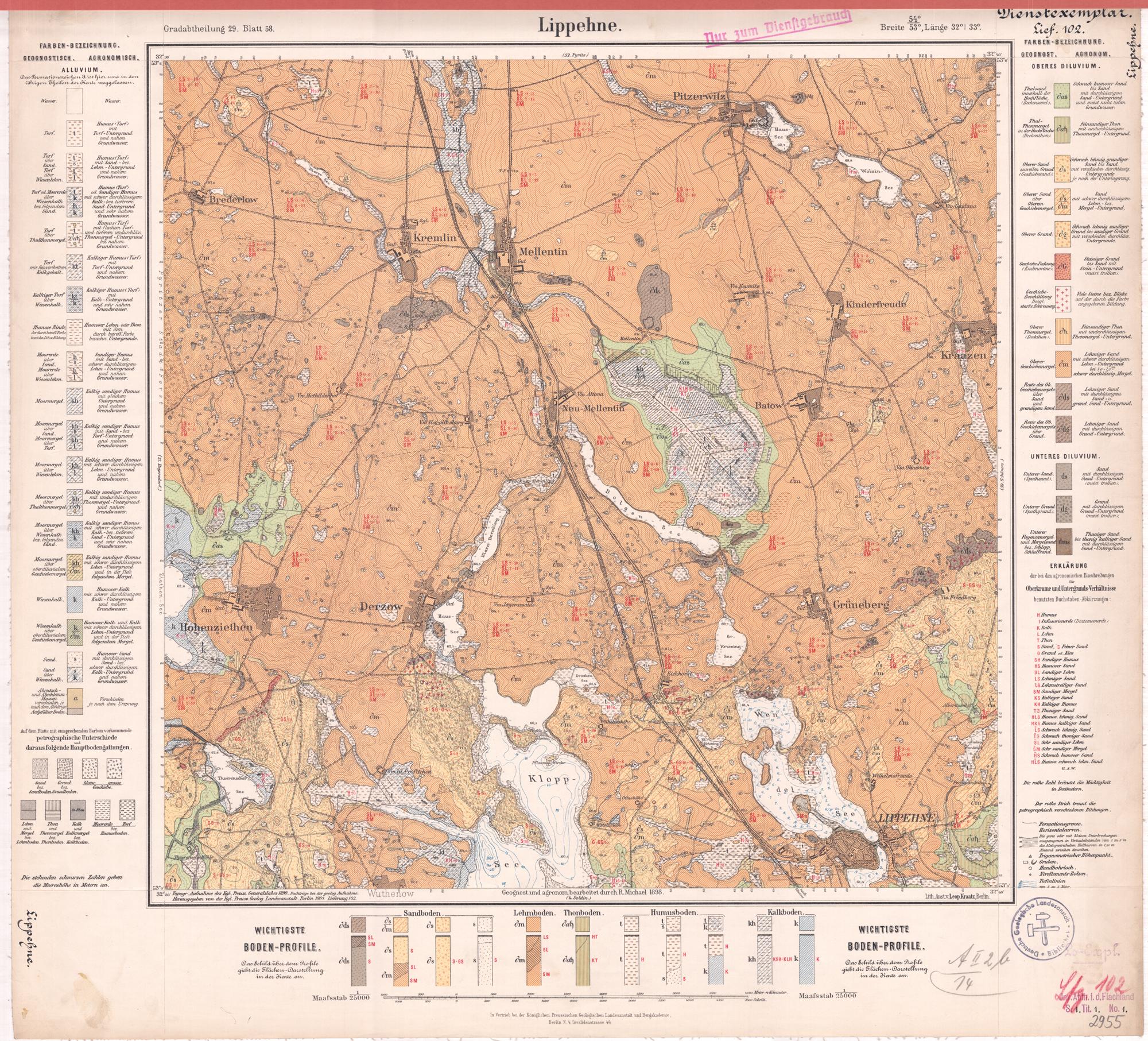 Grad-Abtheilung 29, Blatt 58 [Neue Nr. 2955] (1901) Lippehne : geologische Karte / geognostisch und agronomisch bearb. durch R. Michael 1898