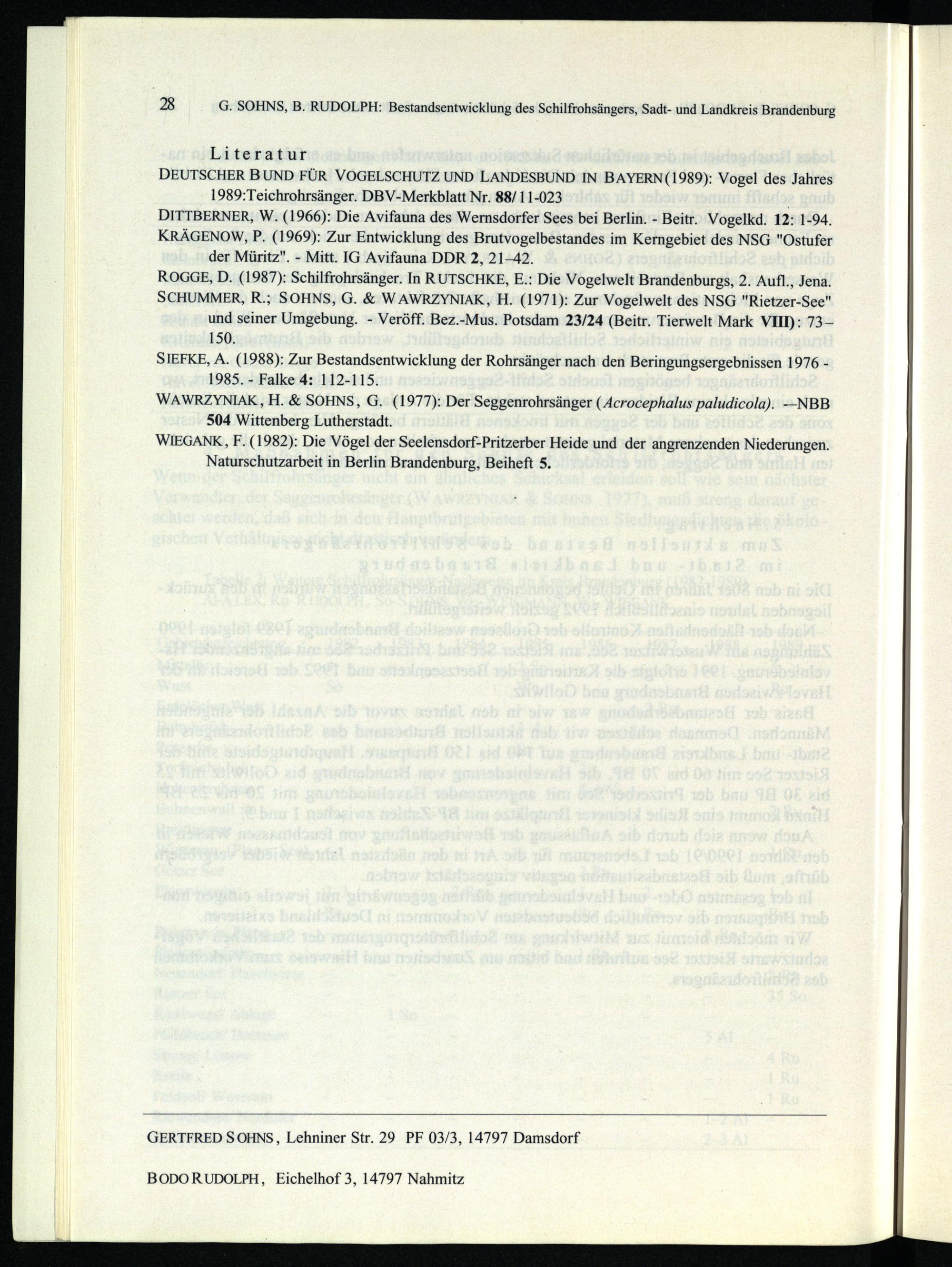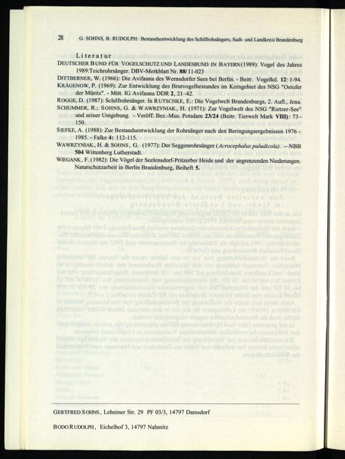 28 G. SOHNS, B. RUDOLPH: Bestandsentwicklung des Schilfrohsängers, Sadt- und Landkreis Brandenburg