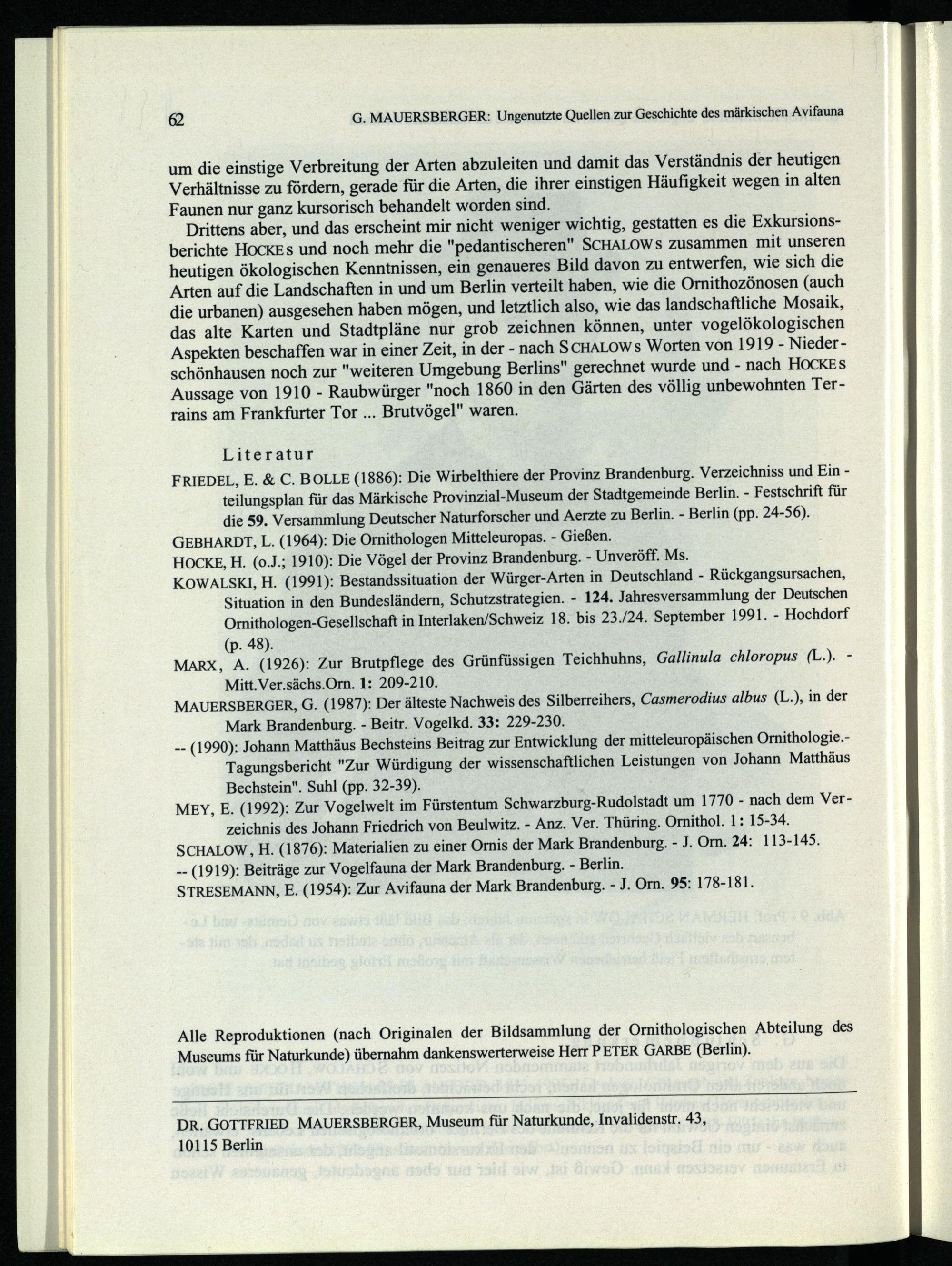62 G. MAUERSBERGER: Ungenutzte Quellen zur Geschichte des märkischen Avifauna