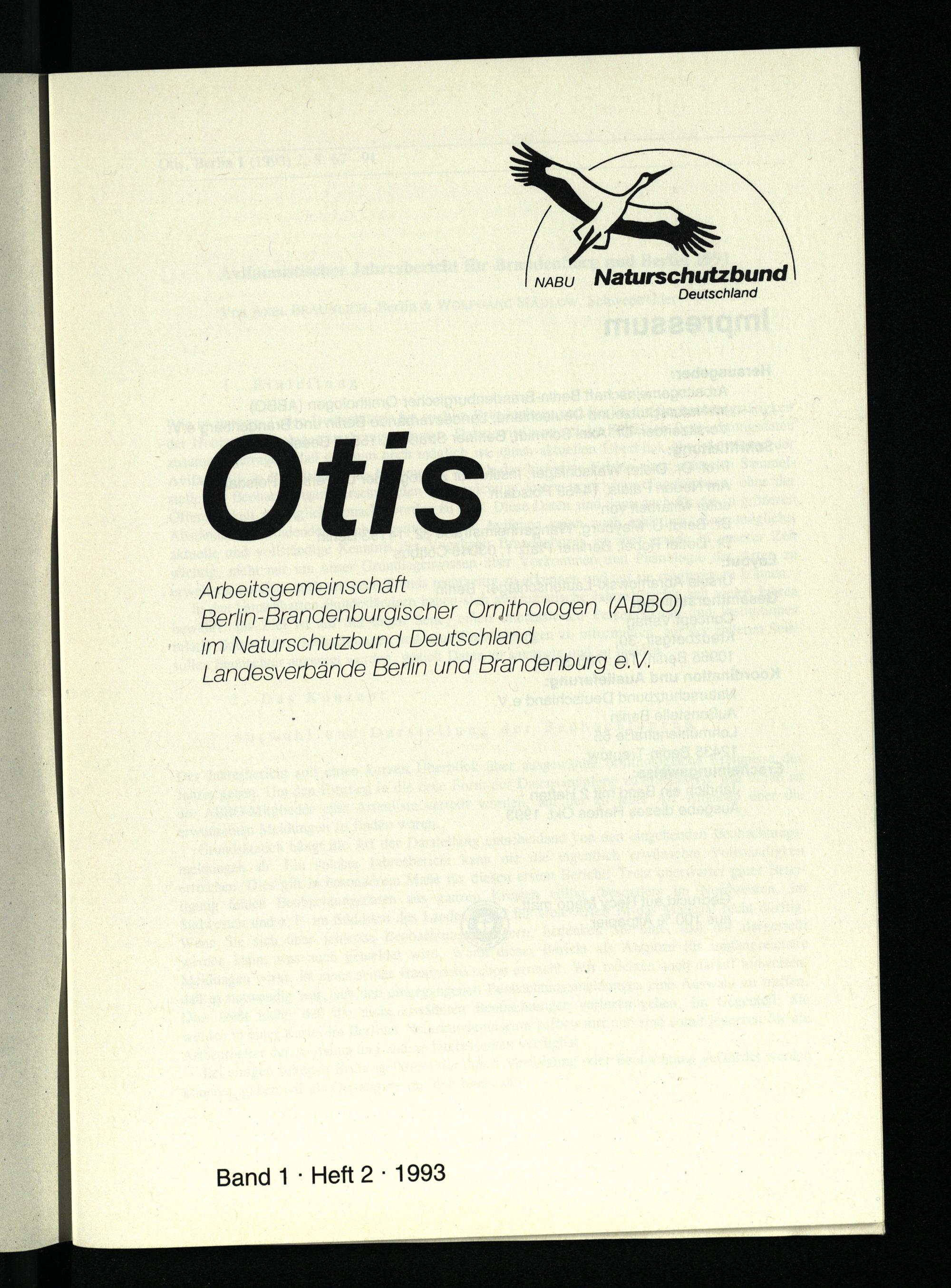 fe Naturschutzbund Deutschland Ö {] Arbeitsgemeinschaft Berlin -Brandenburgischer Ornithologen(ABBO) im Naturschutzbund Deutschland Landesverbände Berlin und Brandenburg e.V. Band 1- Heft 2- 1993