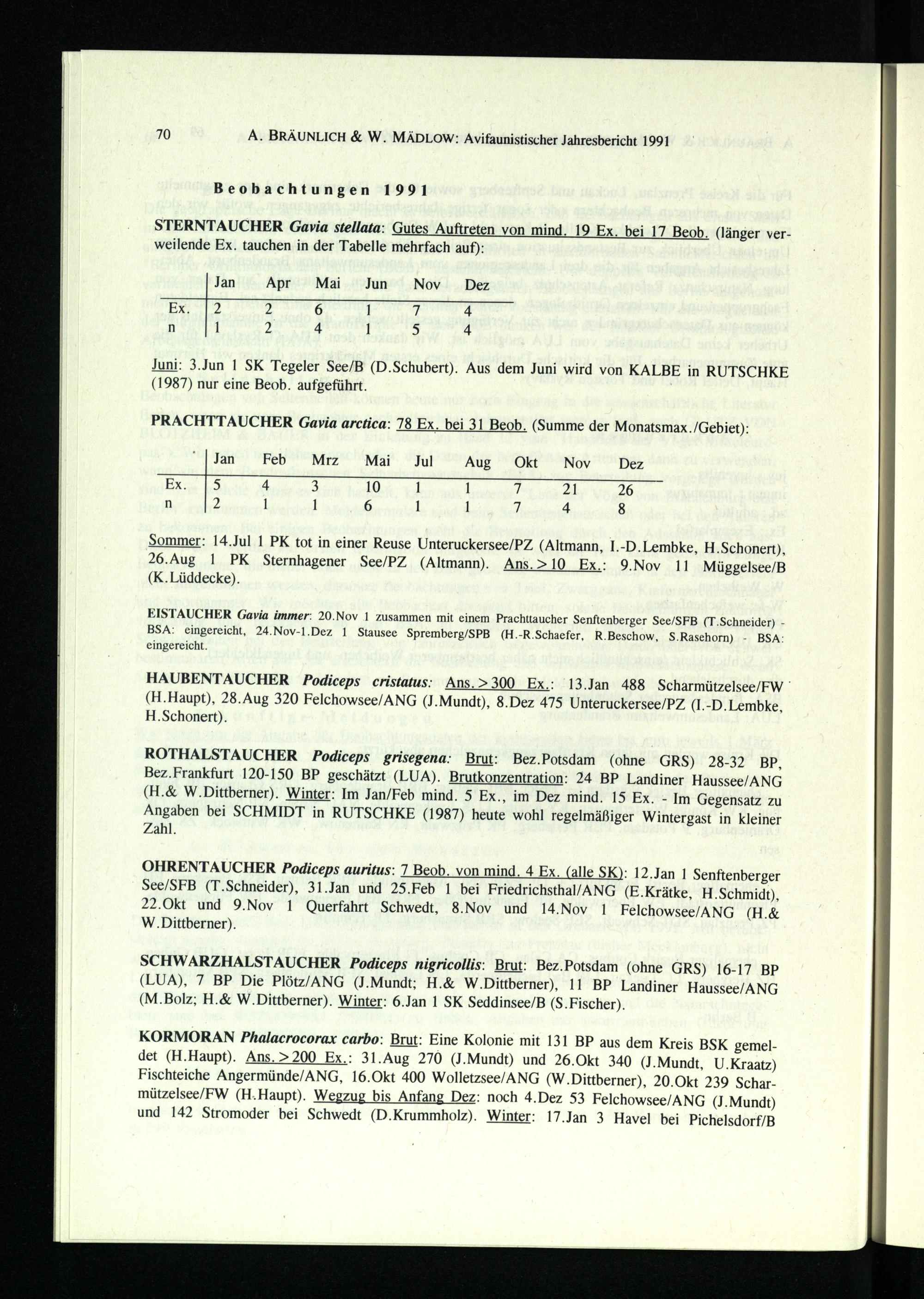 A. BRÄUNLICH& W. MÄDLOW: Avifaunistischer Jahresbericht 1991