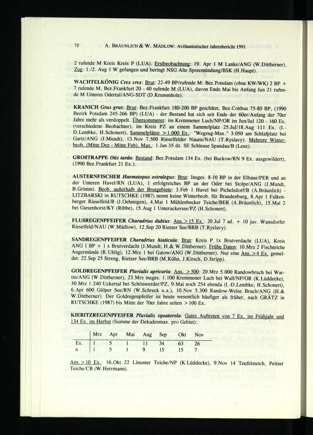 A. BRÄUNLICH& W. MÄDLOW: Avifaunistischer Jahresbericht 1991