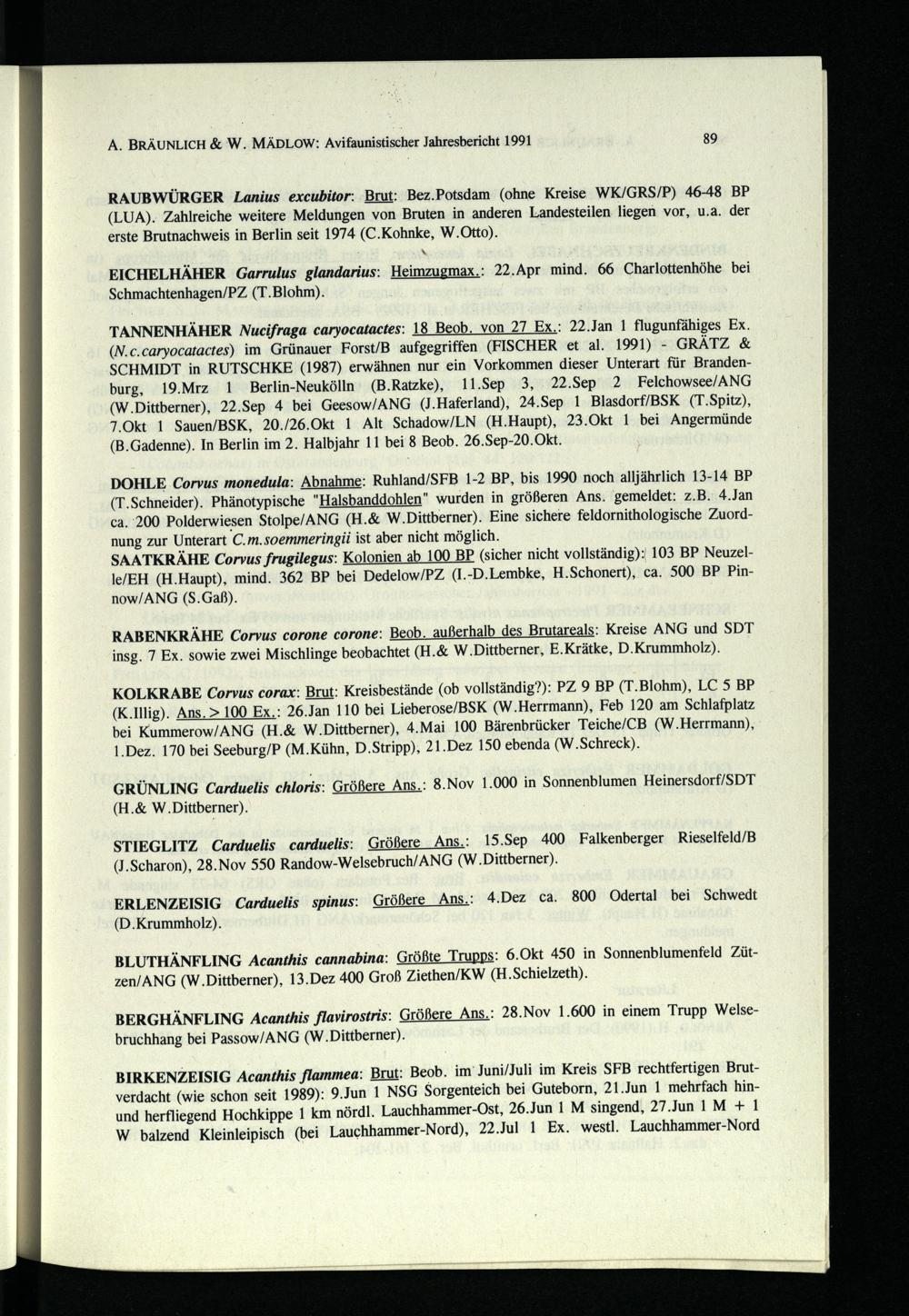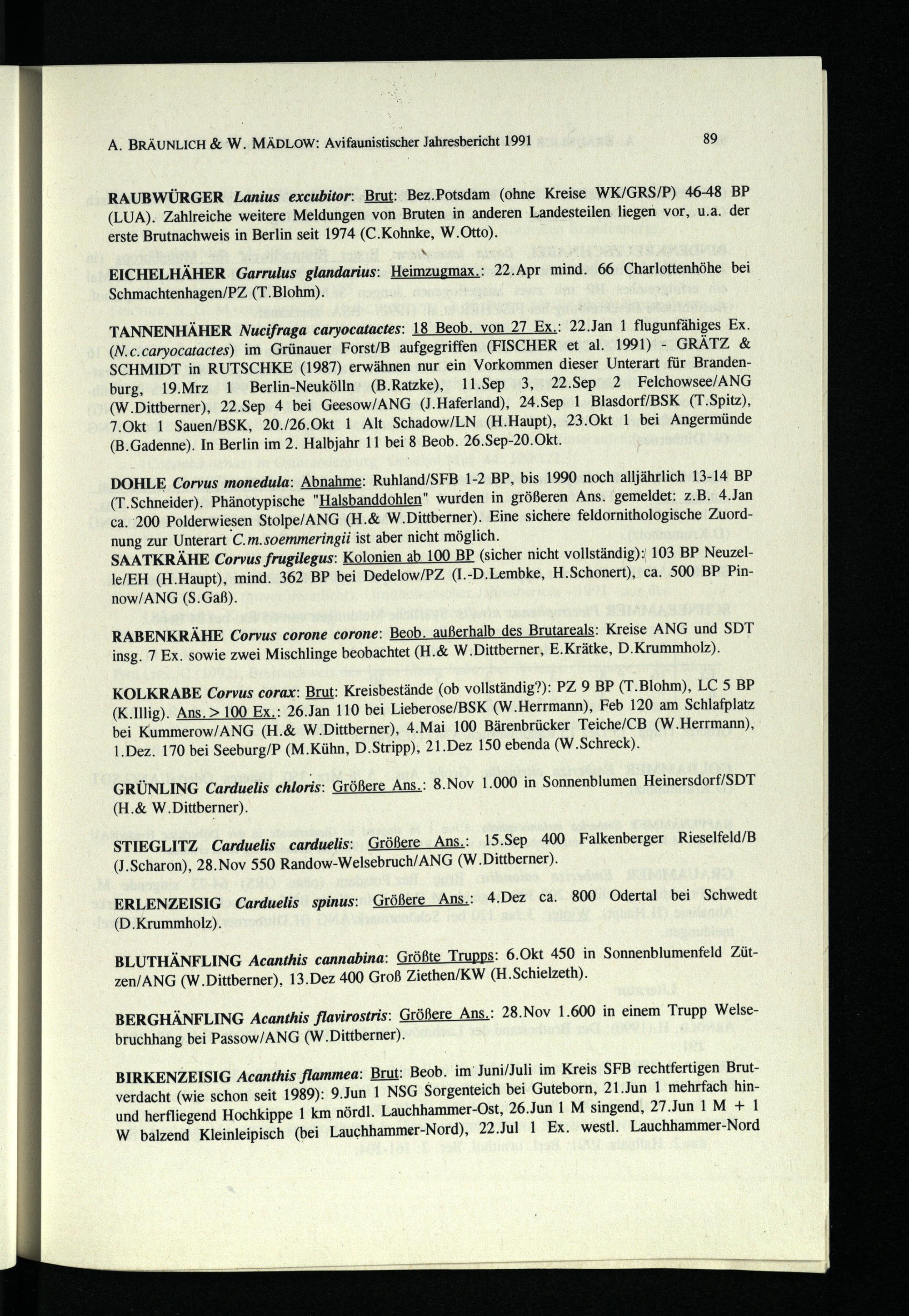 A. BRÄUNLICH& W. MÄDLOW: Avifaunistischer Jahresbericht 1991 89