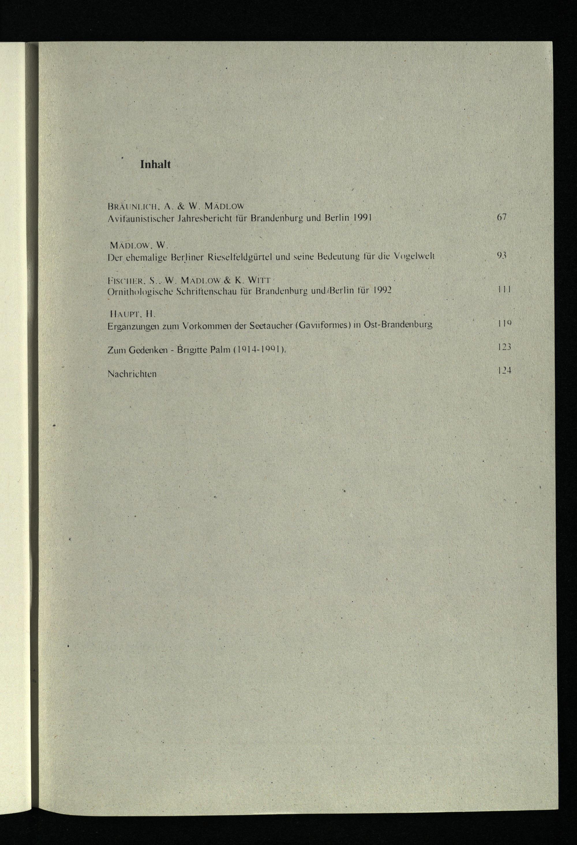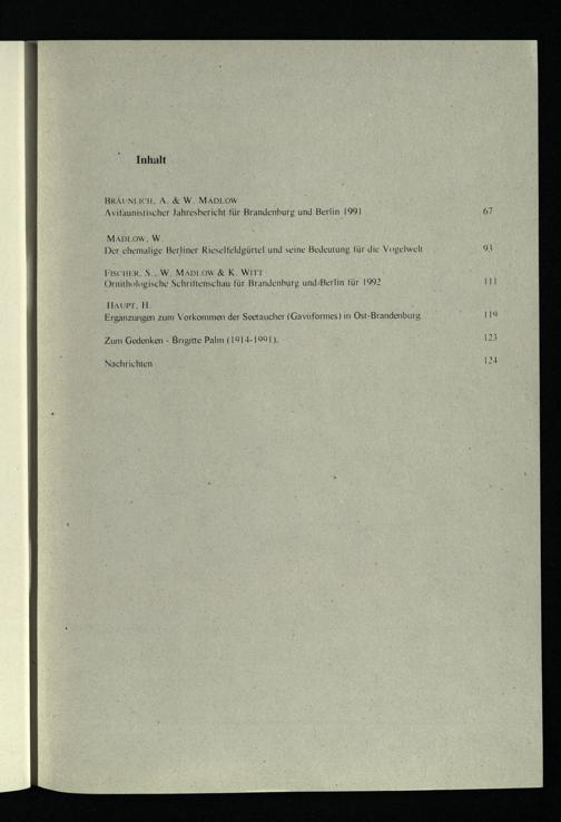 BRÄUNLICH, A.& W. MÄDLOW Avifaunistischer Jahresbericht für Brandenburg und Berlin 1991