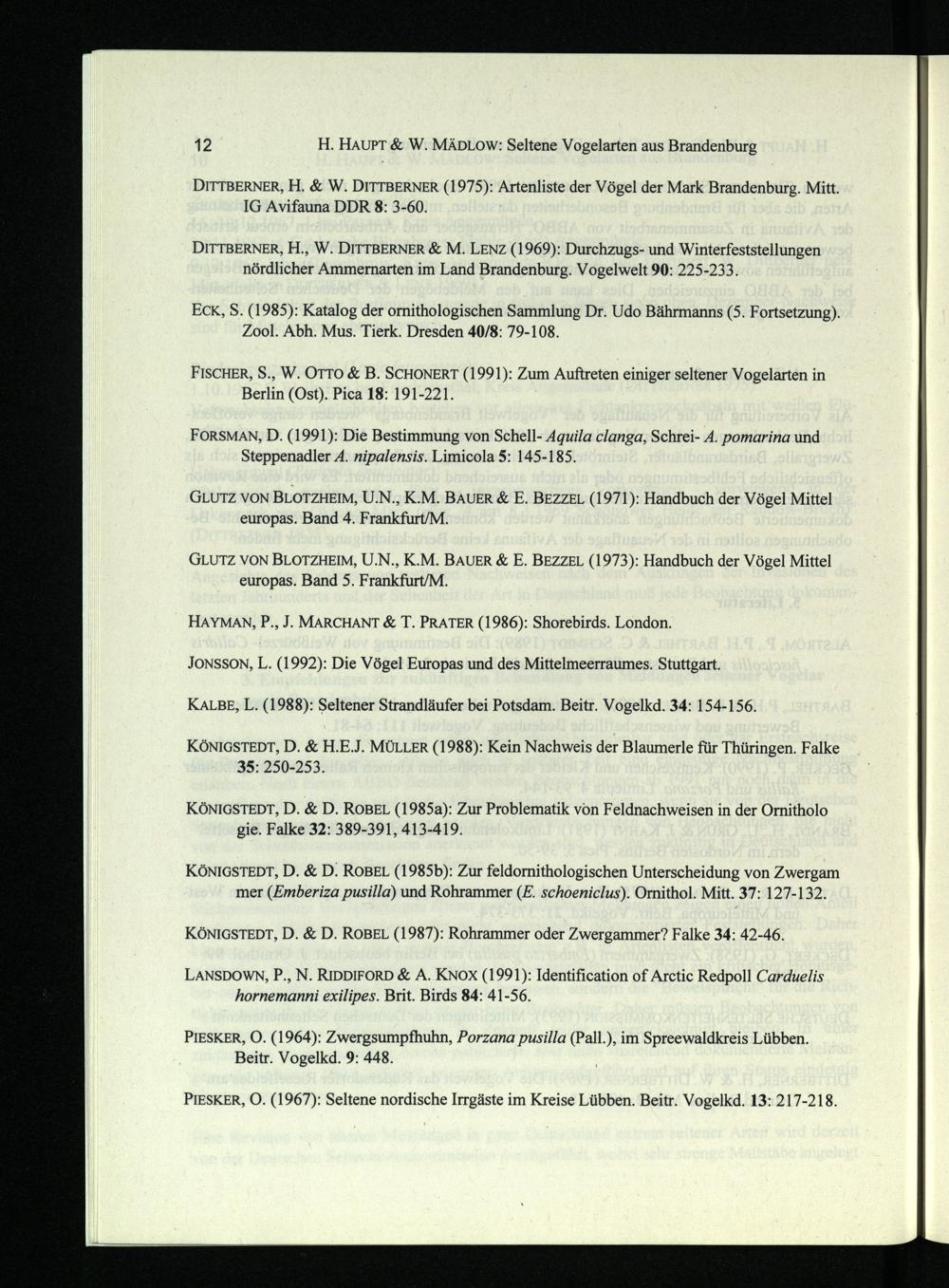 FISCHER, S., W. OTTO& B. SCHONERT(1991): Zum Auftreten einiger seltener Vogelarten in Berlin (Ost). Pica 18: 191-221.