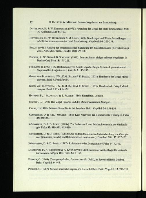DITTBERNER, H.& W. DITTBERNER(1975): Artenliste der Vögel der Mark Brandenburg. Mitt. IG Avifauna DDR 8: 3-60.