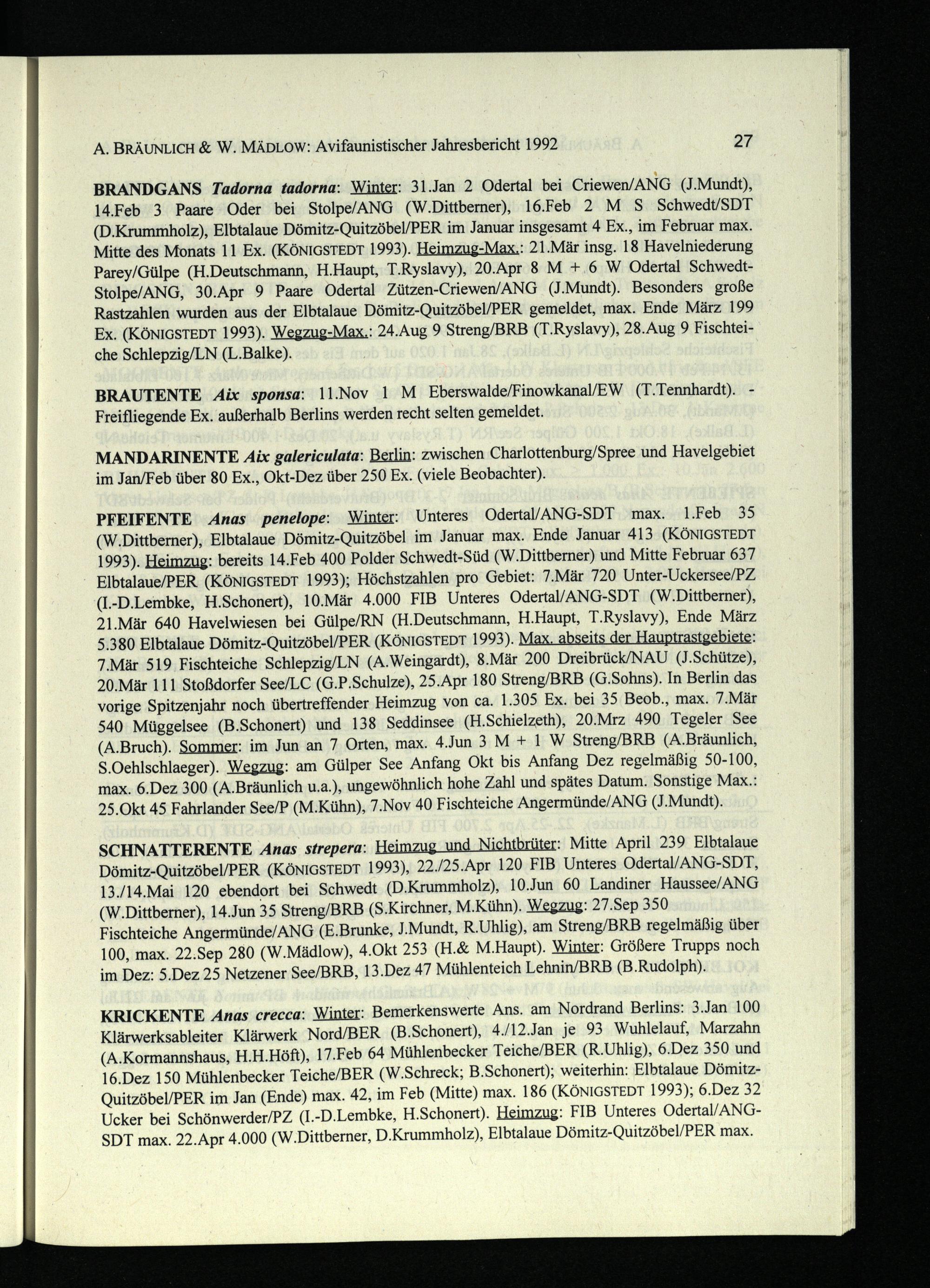 A. BRÄUNLICH& W. MÄDLOW: Avifaunistischer Jahresbericht 1992 27