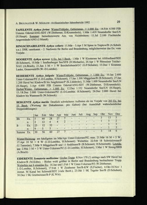 A. BRÄUNLICH& W. MÄDLOW: Avifaunistischer Jahresbericht 1992 29