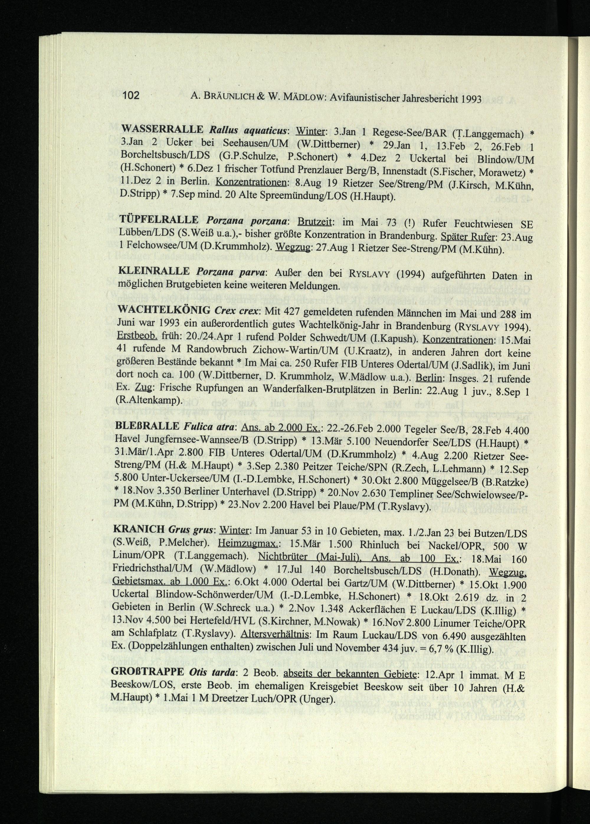 102 A. BRÄUNLICH& W. MÄDLOW: Avifaunistischer Jahresbericht 1993