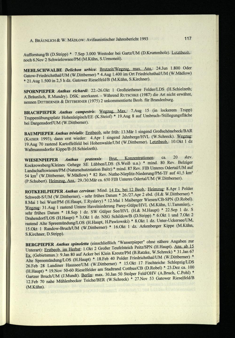 A. BRÄUNLICH& W. MÄDLOW: Avifaunistischer Jahresbericht 1993 117