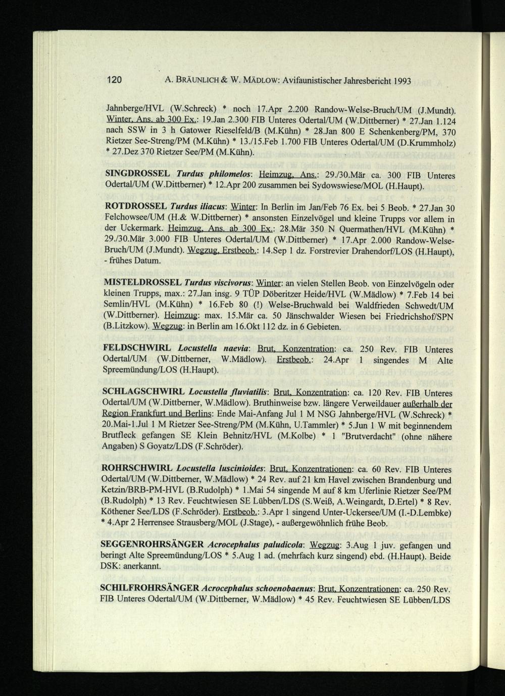 120 A. BRÄUNLICH& W. MÄDLOW: Avifaunistischer Jahresbericht 1993