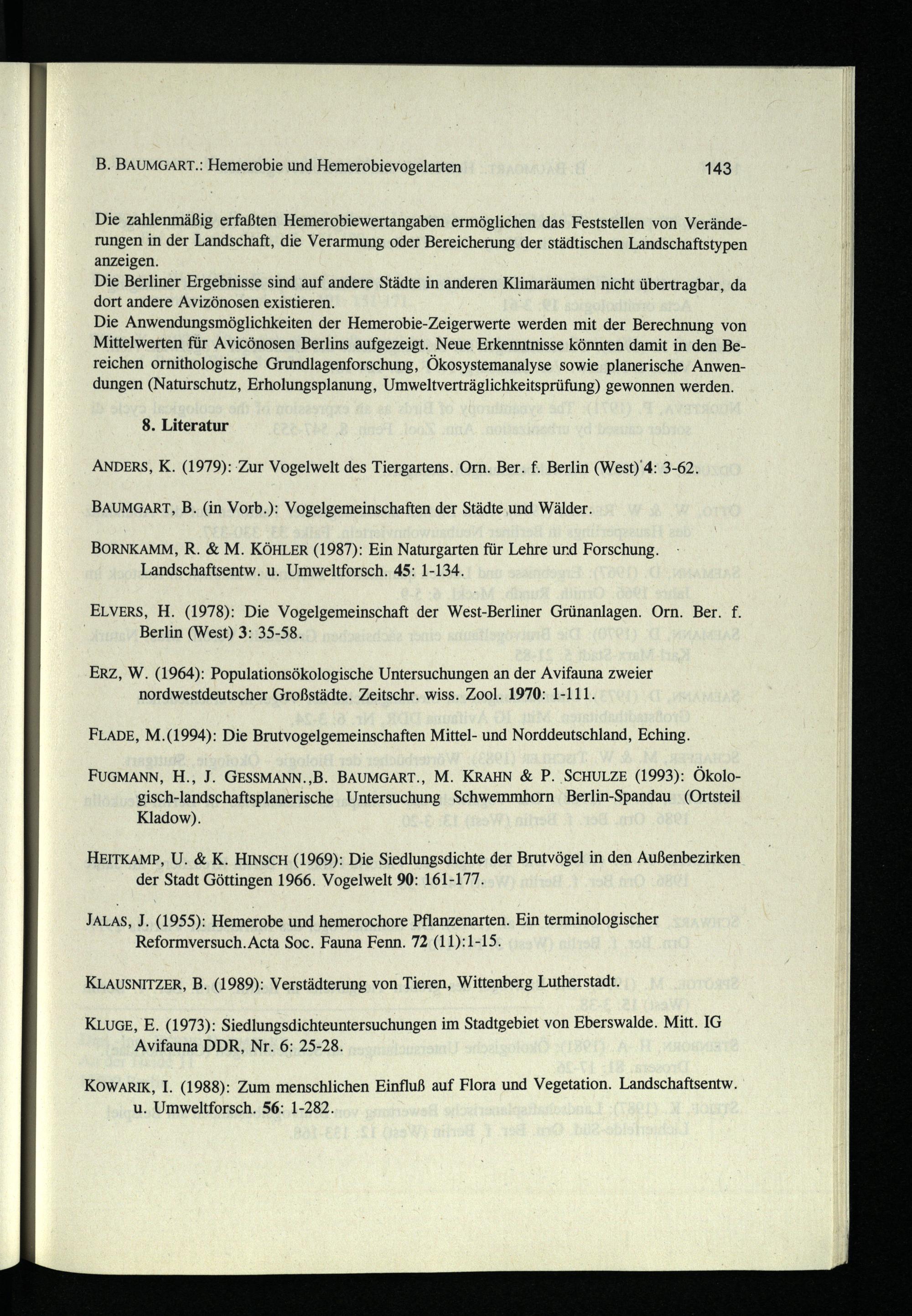 B. BAUMGART.: Hemerobie und Hemerobievogelarten 143