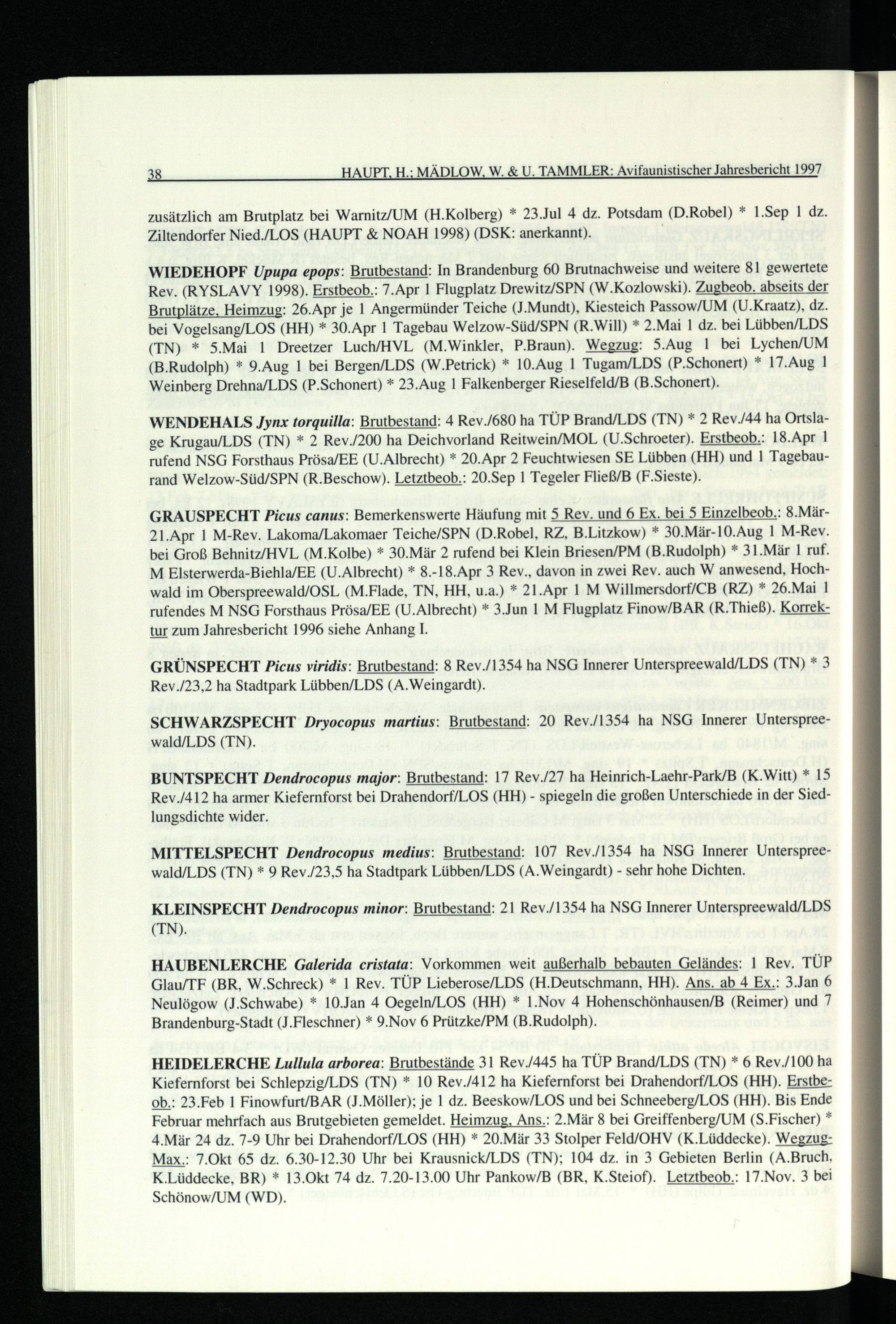 38 HAUPT, H.; MÄDLOW, W.& U. TAMMLER: Avifaunistischer Jahresbericht 1997