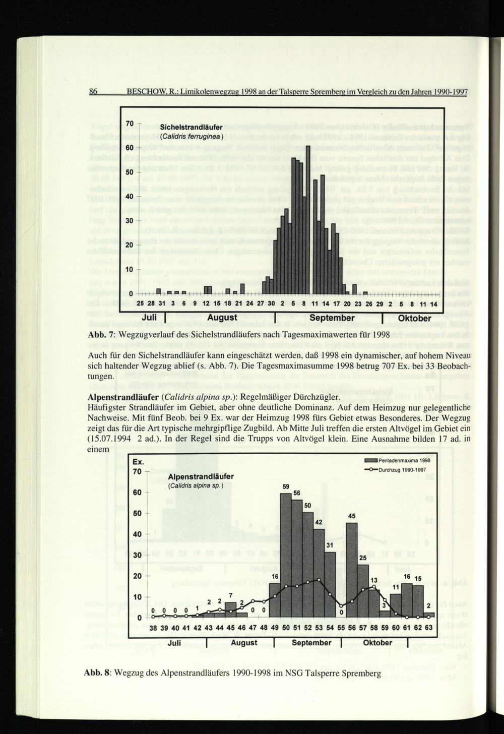 86. BESCHOW, R.: Limikolenwegzug 1998 an der Talsperre Spremberg im Vergleich zu den Jahren 1990-1997