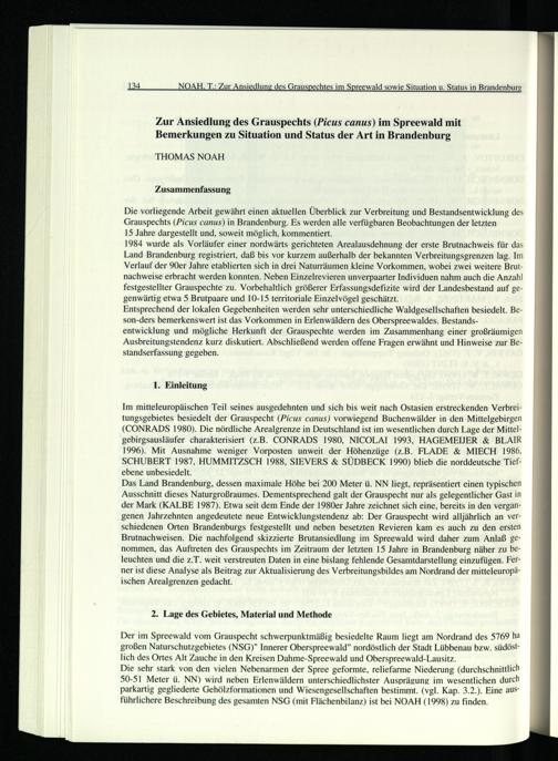 Entsprechend der lokalen Gegebenheiten werden sehr unterschiedliche Waldgesellschaften besiedelt. Beson-ders bemerkenswert ist das Vorkommen in Erlenwäldern des Oberspreewaldes. Bestandsentwicklung und mögliche Herkunft der Grauspechte werden im Zusammenhang einer großräumigen Ausbreitungstendenz kurz diskutiert. Abschließend werden offene Fragen erwähnt und Hinweise zur Bestandserfassung gegeben.