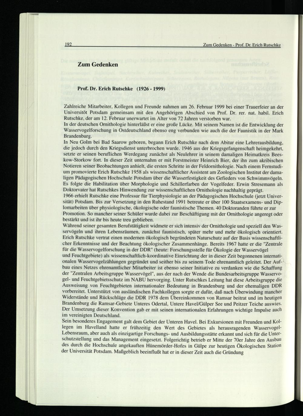 Zahlreiche Mitarbeiter, Kollegen und Freunde nahmen am 26. Februar 1999 bei einer Trauerfeier an der Universitöt Potsdam gemeinsam mit den Angehörigen Abschied von Prof. Dr. rer. nat. habil. Erich Rutschke , der am 12. Februar unerwartet im Alter von 72 Jahren verstorben war.