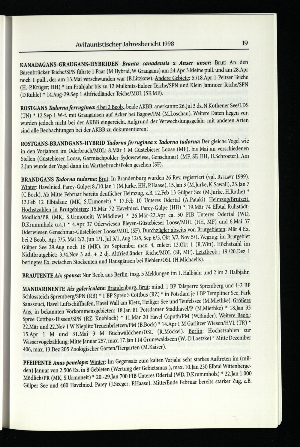 Avifaunistischer Jahresbericht 1998 19