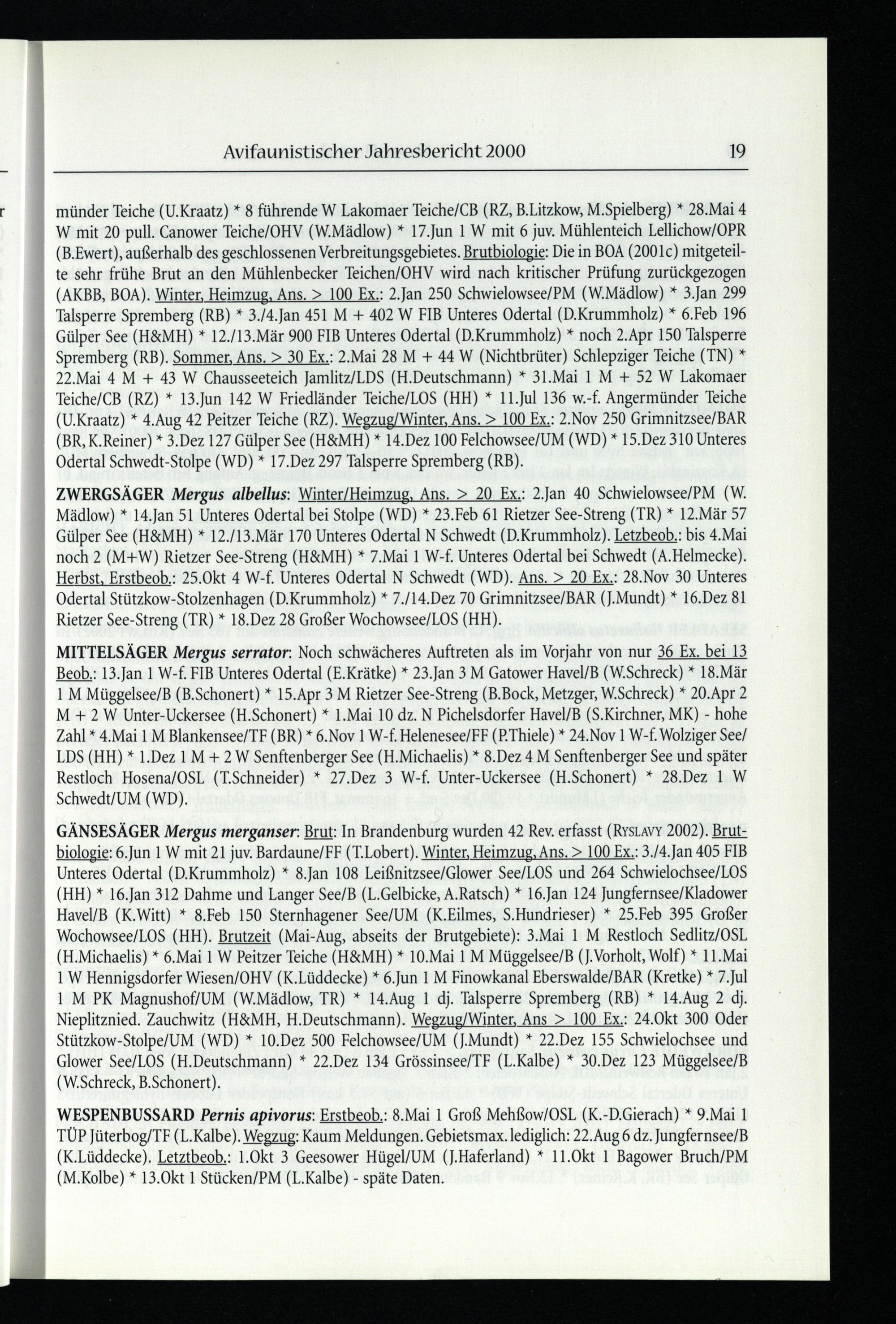 Avifaunistischer Jahresbericht 2000 19