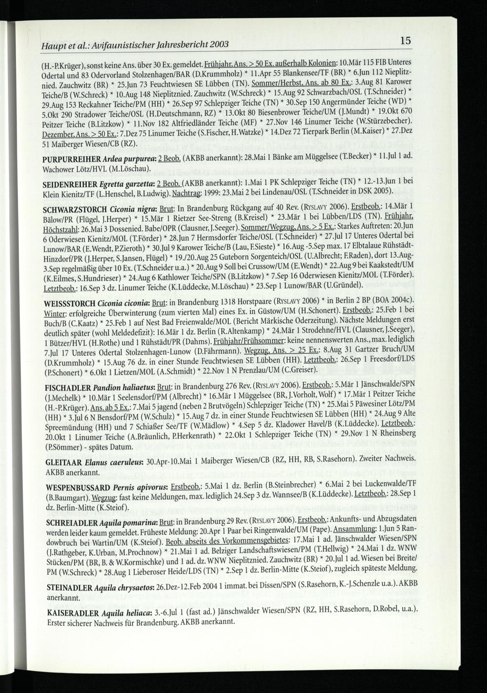 Haupt et al.: Avifaunistischer Jahresbericht 2003 15