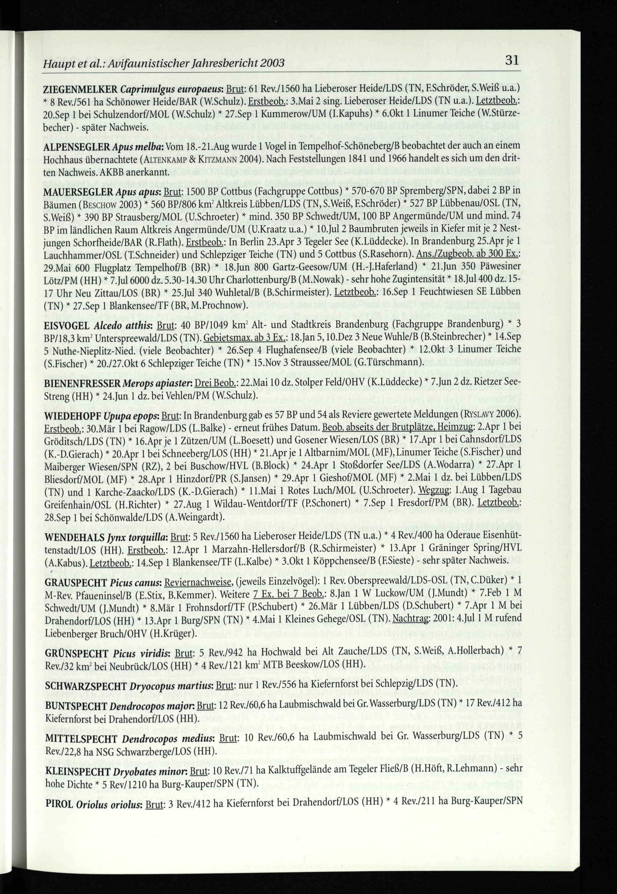 Haupt et al.: Avifaunistischer Jahresbericht 2003 31