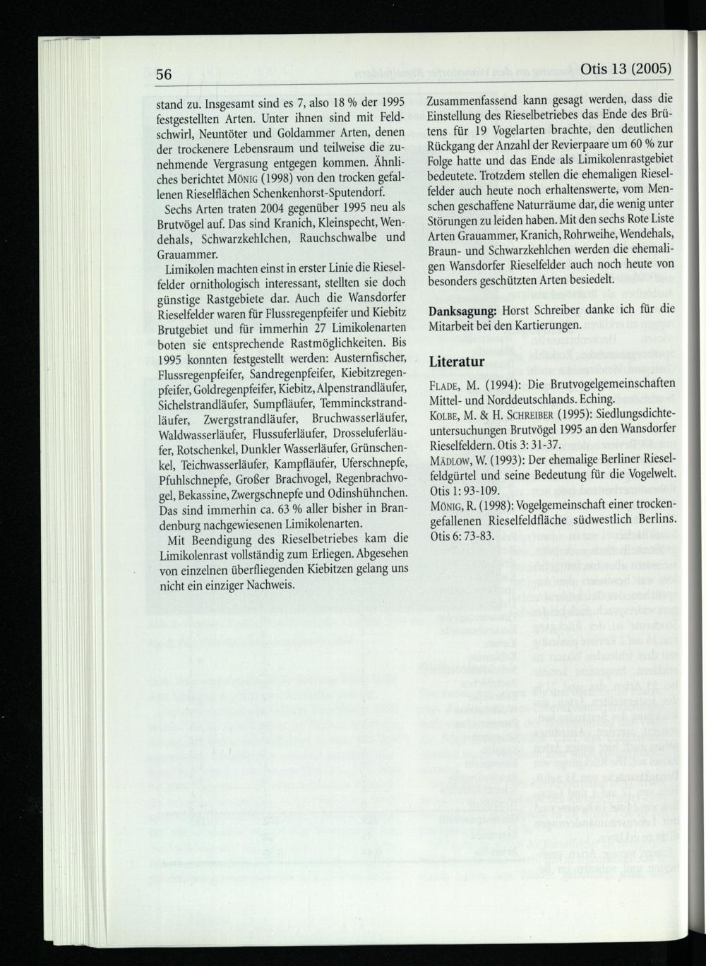 KoLBE, M.& H. SCHREIBER(1995): Siedlungsdichteuntersuchungen Brutvögel 1995 an den Wansdorfer Rieselfeldern. Otis 3: 31-37.