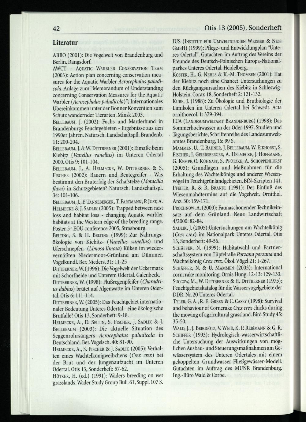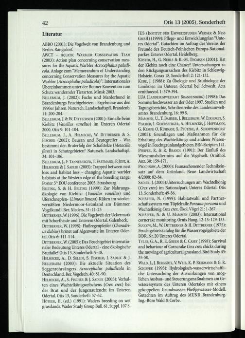 DITTBERNER, W.(2005): Das Feuchtgebiet internationaler Bedeutung Unteres Odertal- eine ökologische Brutfalle? Otis 13, Sonderheft: 9-18.