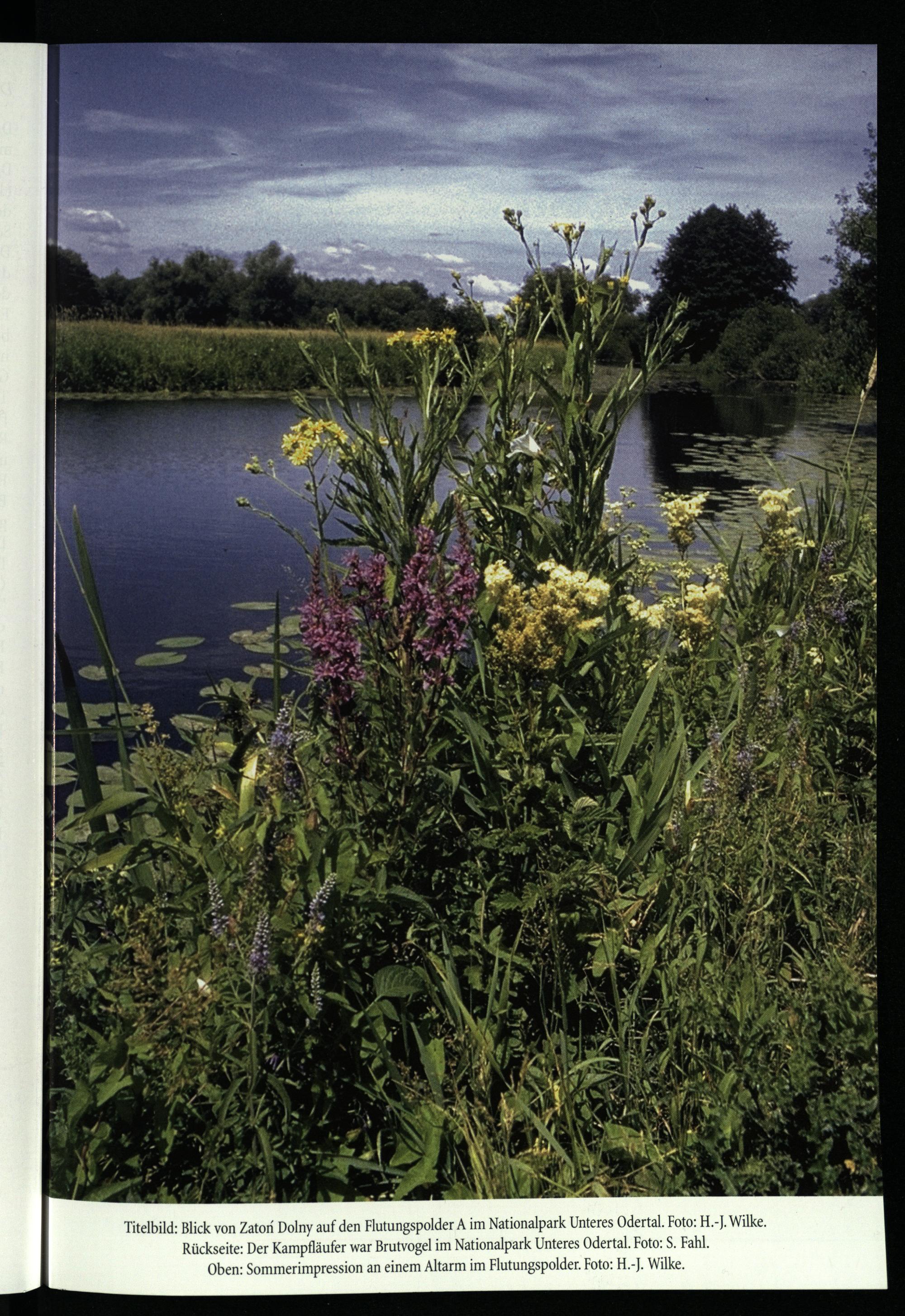 Titelbild: Blick von Zatori Dolny auf den Flutungspolder A im Nationalpark Unteres Odertal. Foto: H.-J. Wilke. Rückseite: Der Kampfläufer war Brutvogel im Nationalpark Unteres Odertal. Foto: S. Fahl. Oben: Sommerimpression an einem Altarm i Flutungspolder. Foto: H.-J. Wilke.
